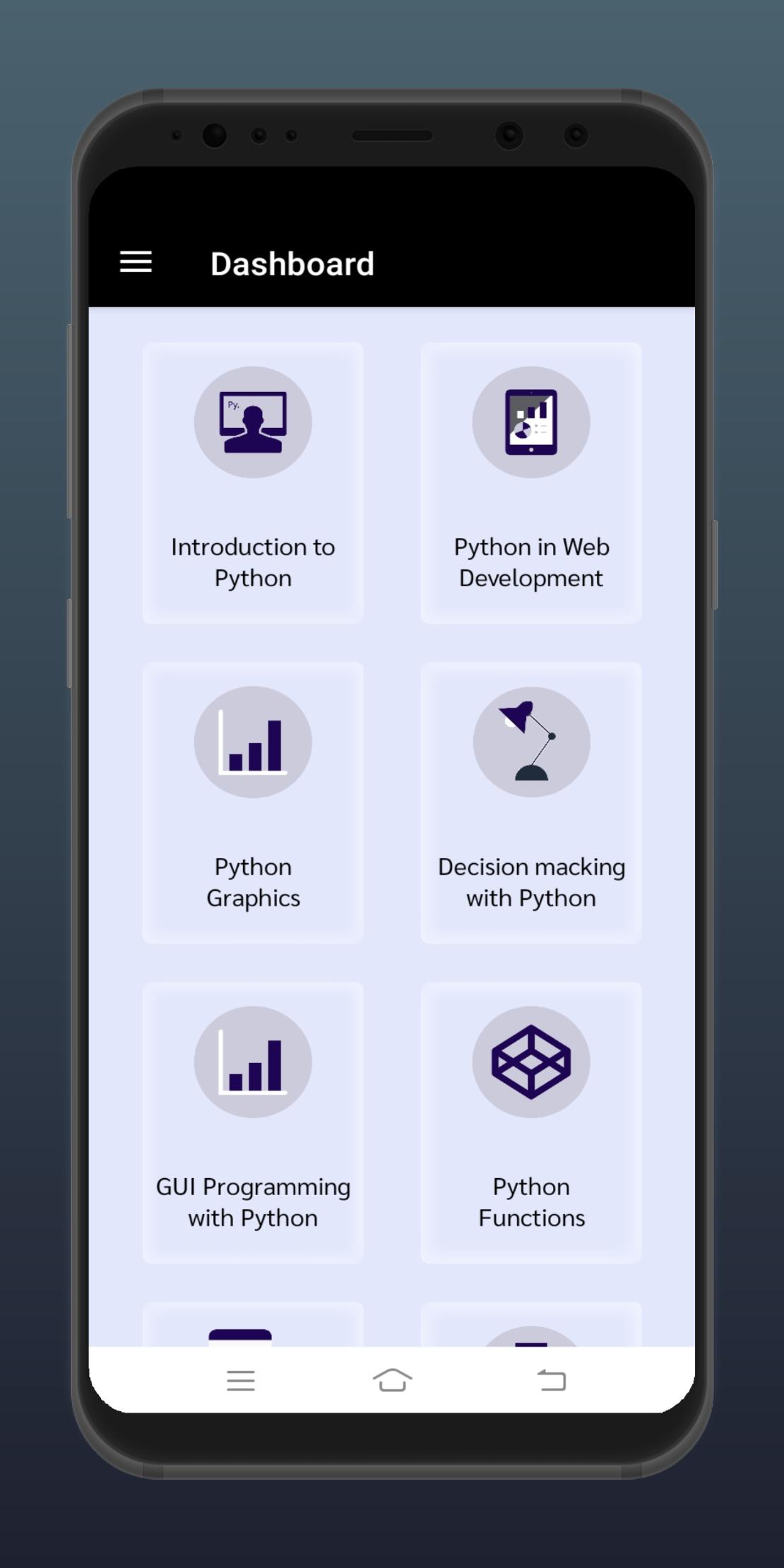 I designed this Python programming App to be easily understood by absolute beginners and young people. We start with basic Python programming concepts.
