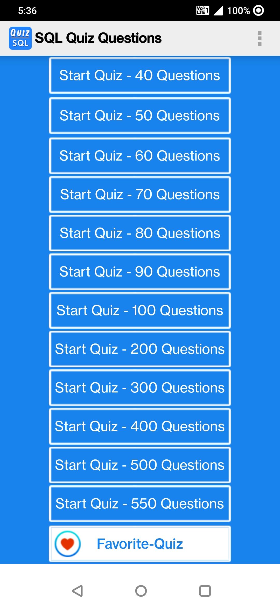 SQL Quiz Questions App having total 2500 multiple choice practice questions