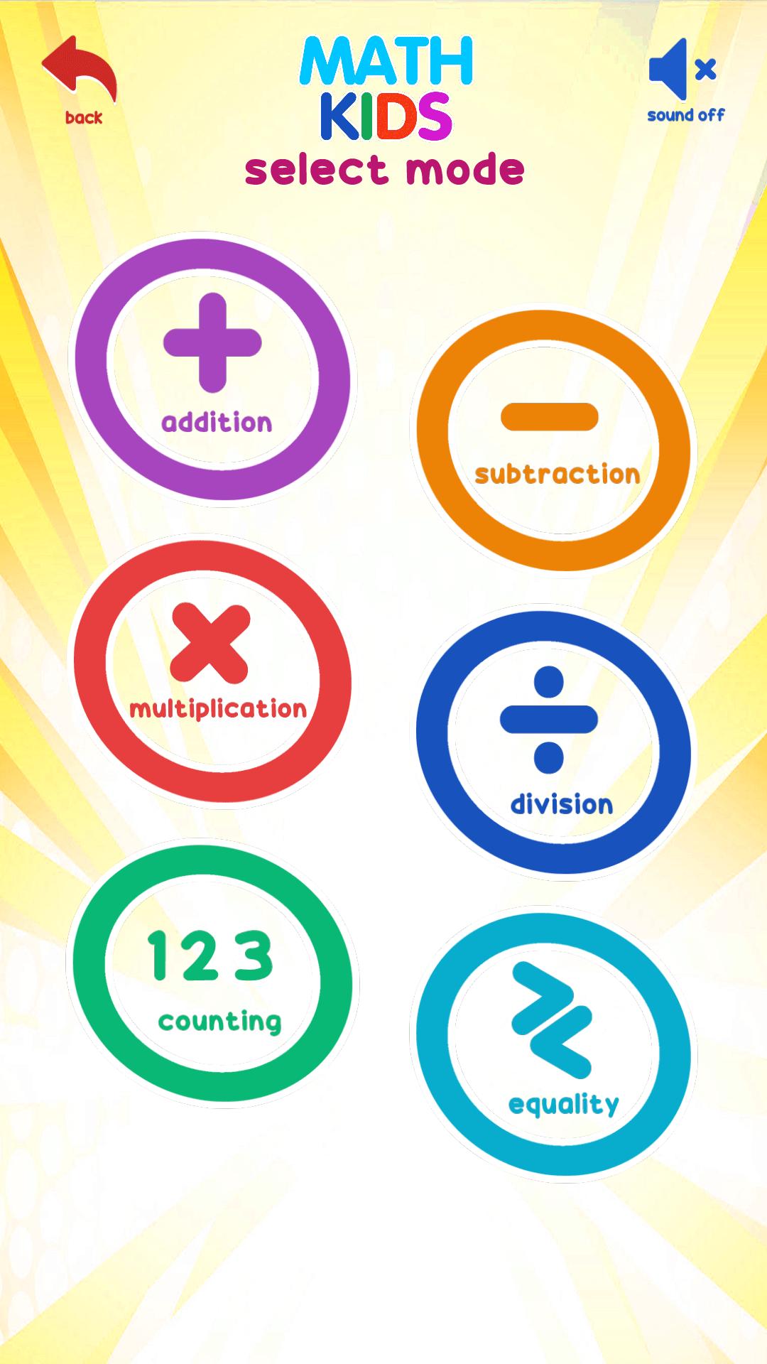 Math kids is a math game for kids that will allow you to learn basic math or consolidate your knowledge in a fun way instead of tormenting with textbooks! Teaches children basic mathematics (addition, subtraction, multiplication, division, comparison and counting). Children will have to solve many different and interesting mathematical tasks in a playful way by choosing the correct answers. It's like passing a children's test in mathematics by checking current skills in mathematics and learning to count in your head quickly and without mistakes.