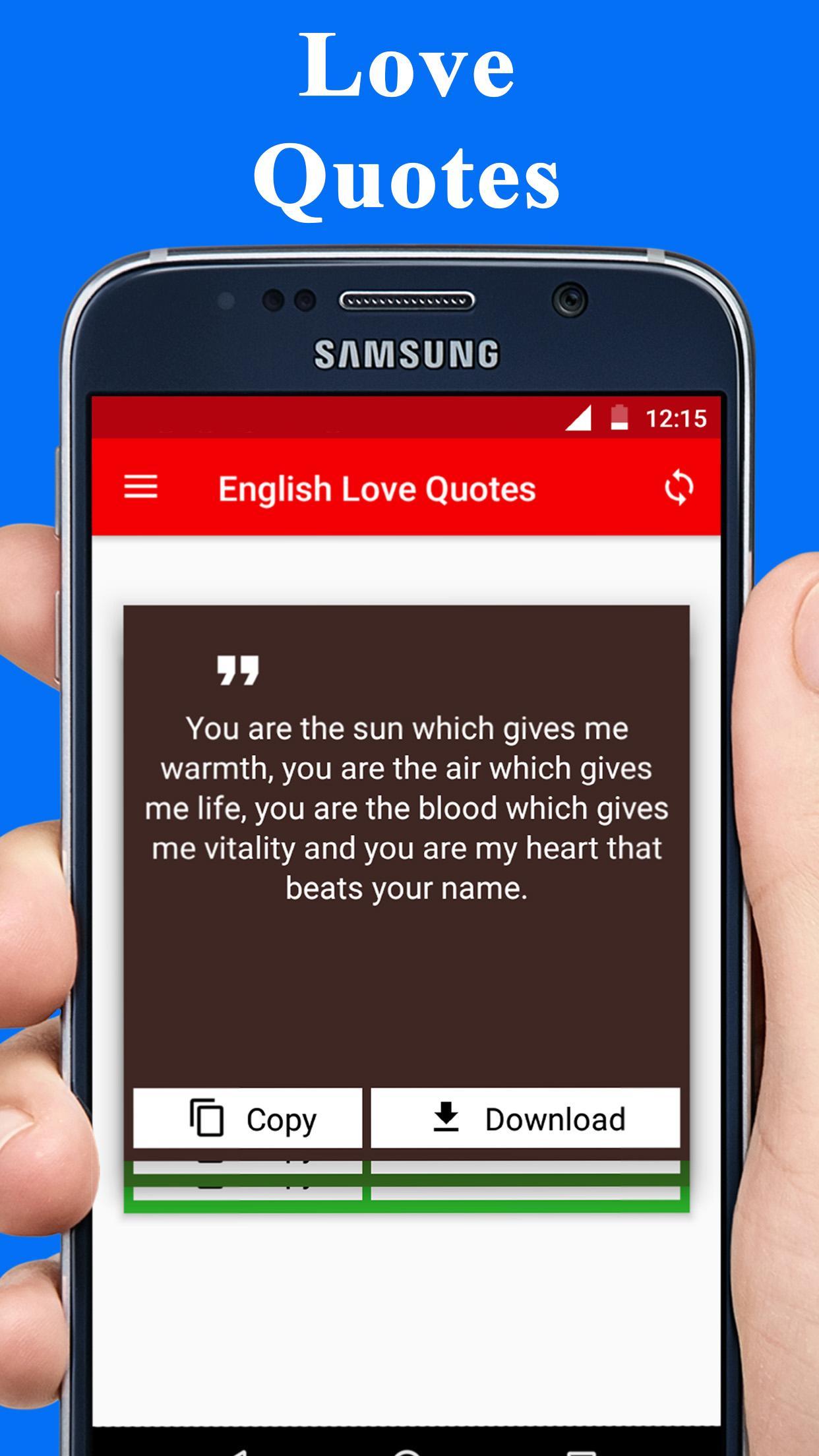 This app brings you the best collection of English Love Quotes for 2017. True love quotes to show your love. These romantic love quotes in English can be sent as an SMS to mobile or can be set as a WhatsApp status or it can also be used as a new WhatsApp image status.