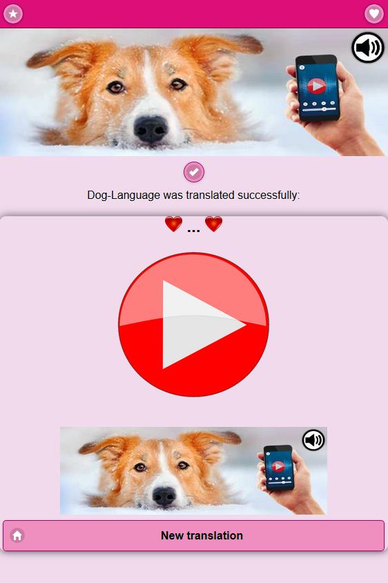 Translate your message into dog language now. You are able to play the message for your dog. Communicate with your dog now!