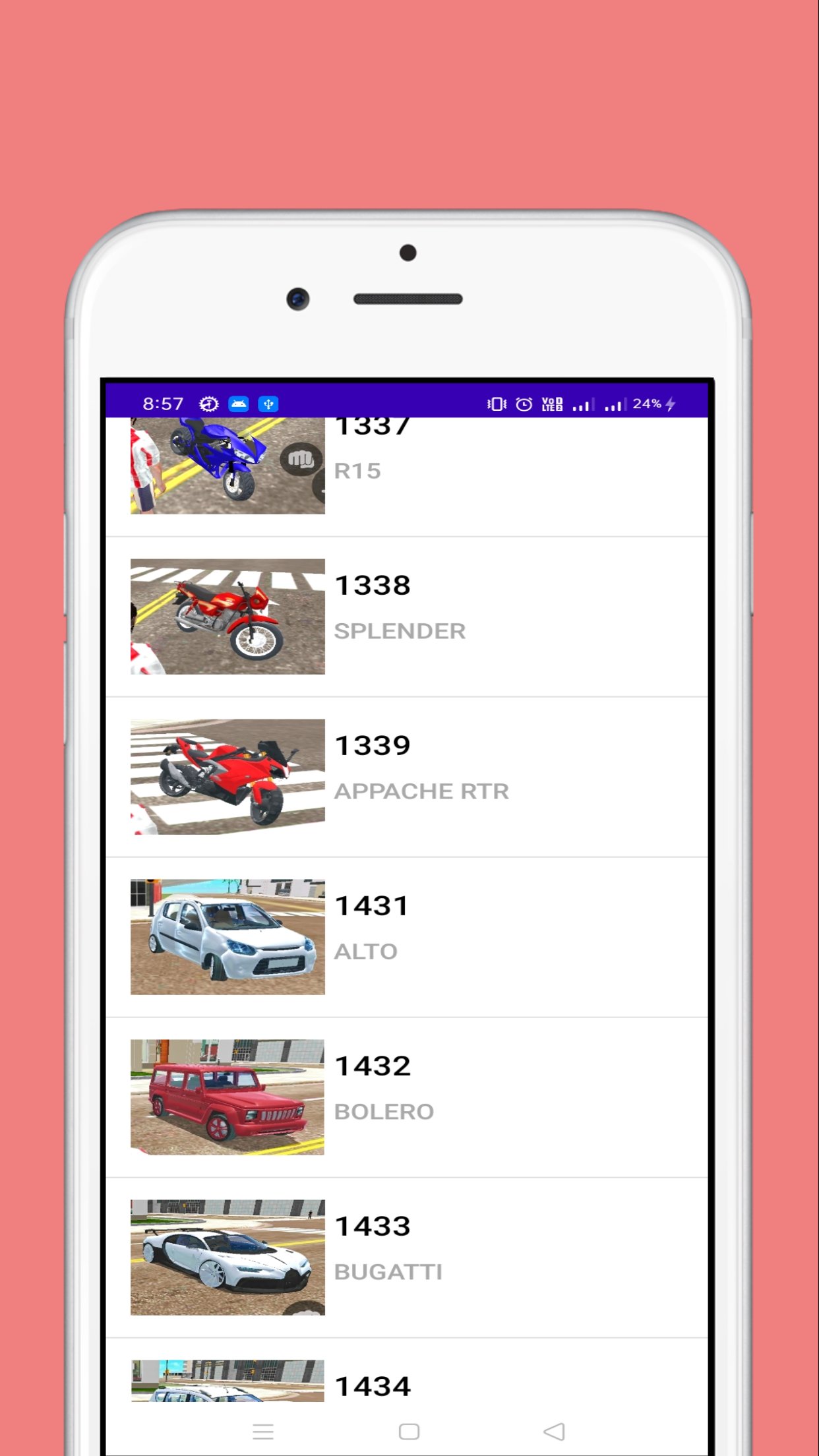 this app has cheats codes for Indian Bikes & Cars Driving 3D game