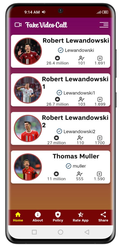 Now, through the Robert Lewandowski fake video call prank app You can joke with your friends and make a fake call prank with Robert Lewandowski.