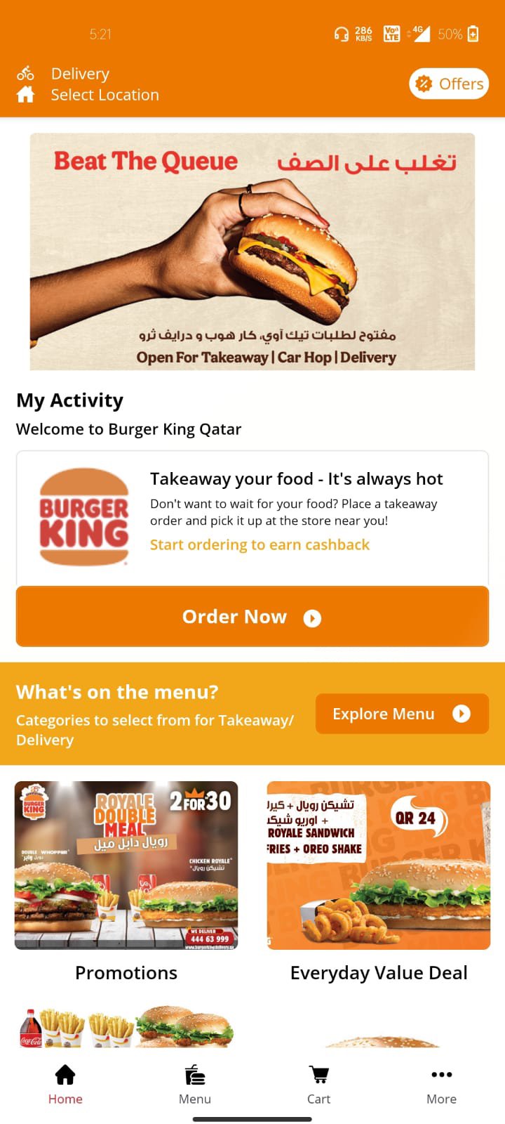 Burger King Online Order App, In this application you can find Exclusive Offers available only in the App, Discount Coupons to enjoy your favorite menu items at the best price and promotions all BURGER KING QATAR ® so you do not miss anything. Also, you can find the nearest restaurant and help you reach so you do not miss the experience of visiting.