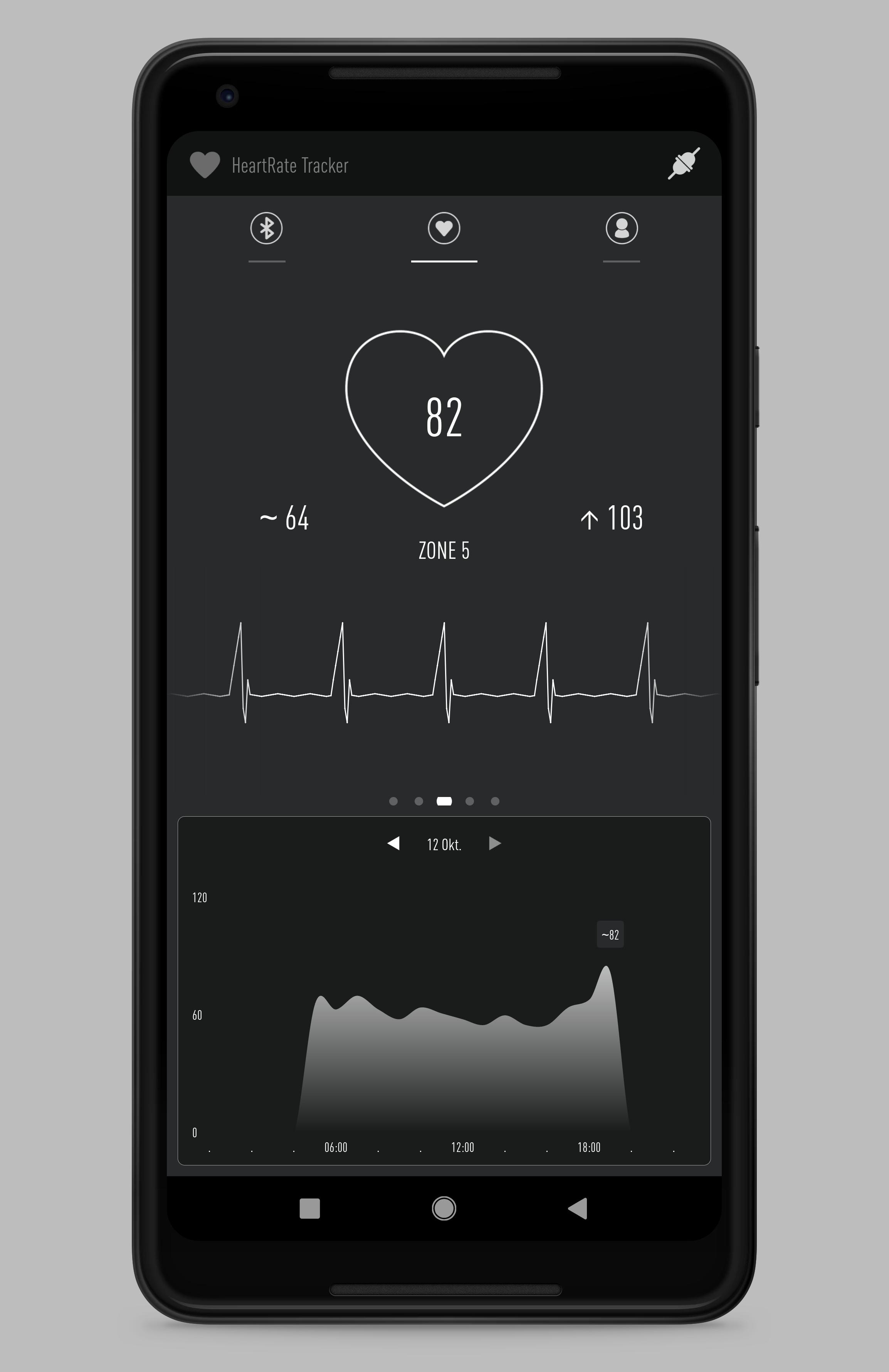 - Heart rate charts (hourly, daily, weekly, monthly)