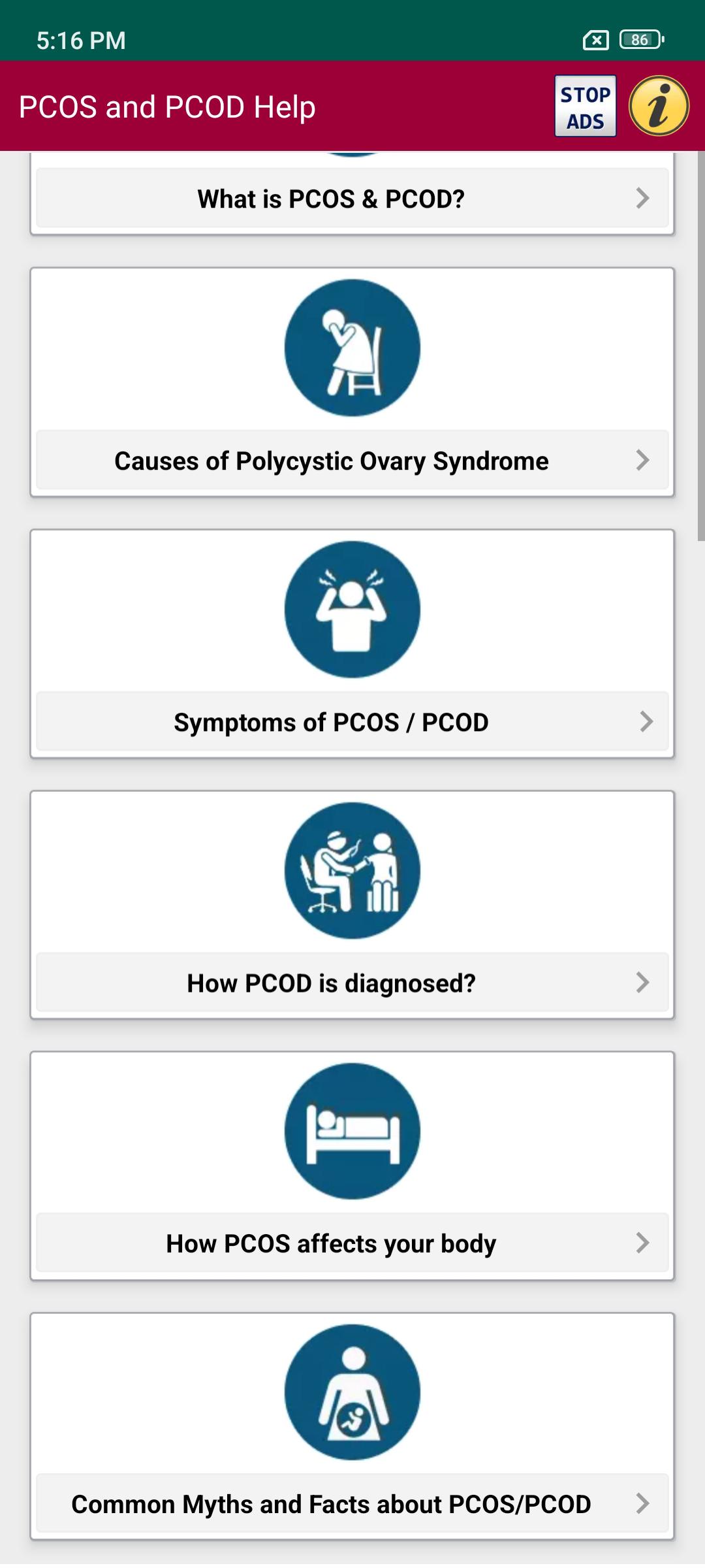 Download this Free android App for PCOS (Polycystic ovary syndrome) and PCOD (Polycystic Ovarian Disease) Help and Treatment information. App also helps about Symptoms & causes with Diet and Healthy Foods Home Remedies.