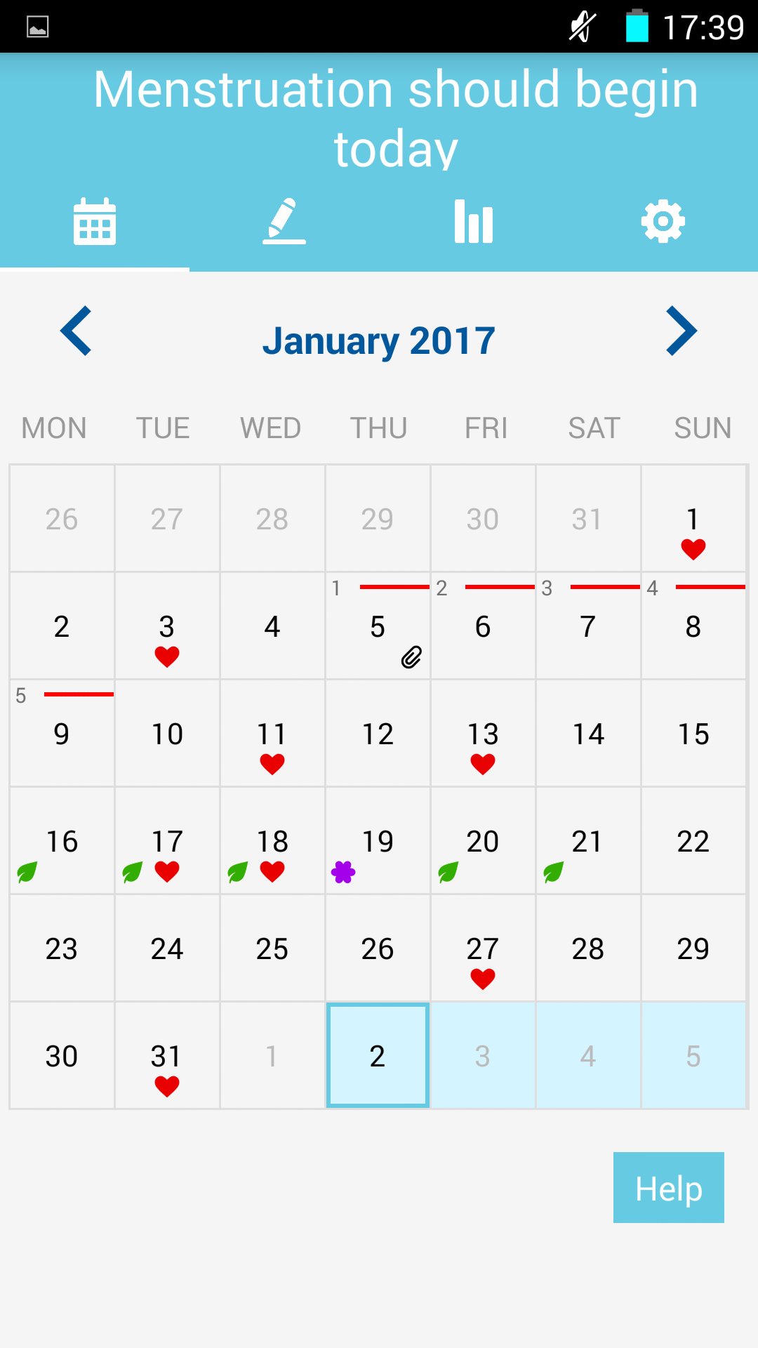 * Intuitive calendar showing menstrual cycle, expected period, fertility and ovulation