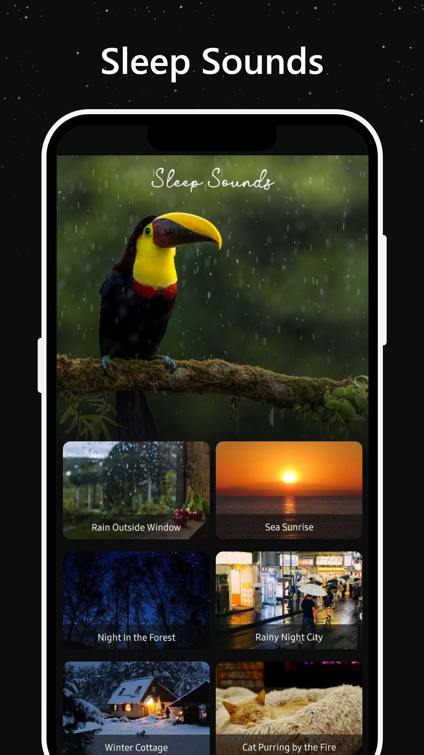 Sleep Sounds - Meditate, Calm offers awesome collection of HD sounds that can be mixed to produce the perfect relaxing ambiences. Multiple categories are available to choose from like rain, nature sounds, city sounds, and musical instrument sounds.