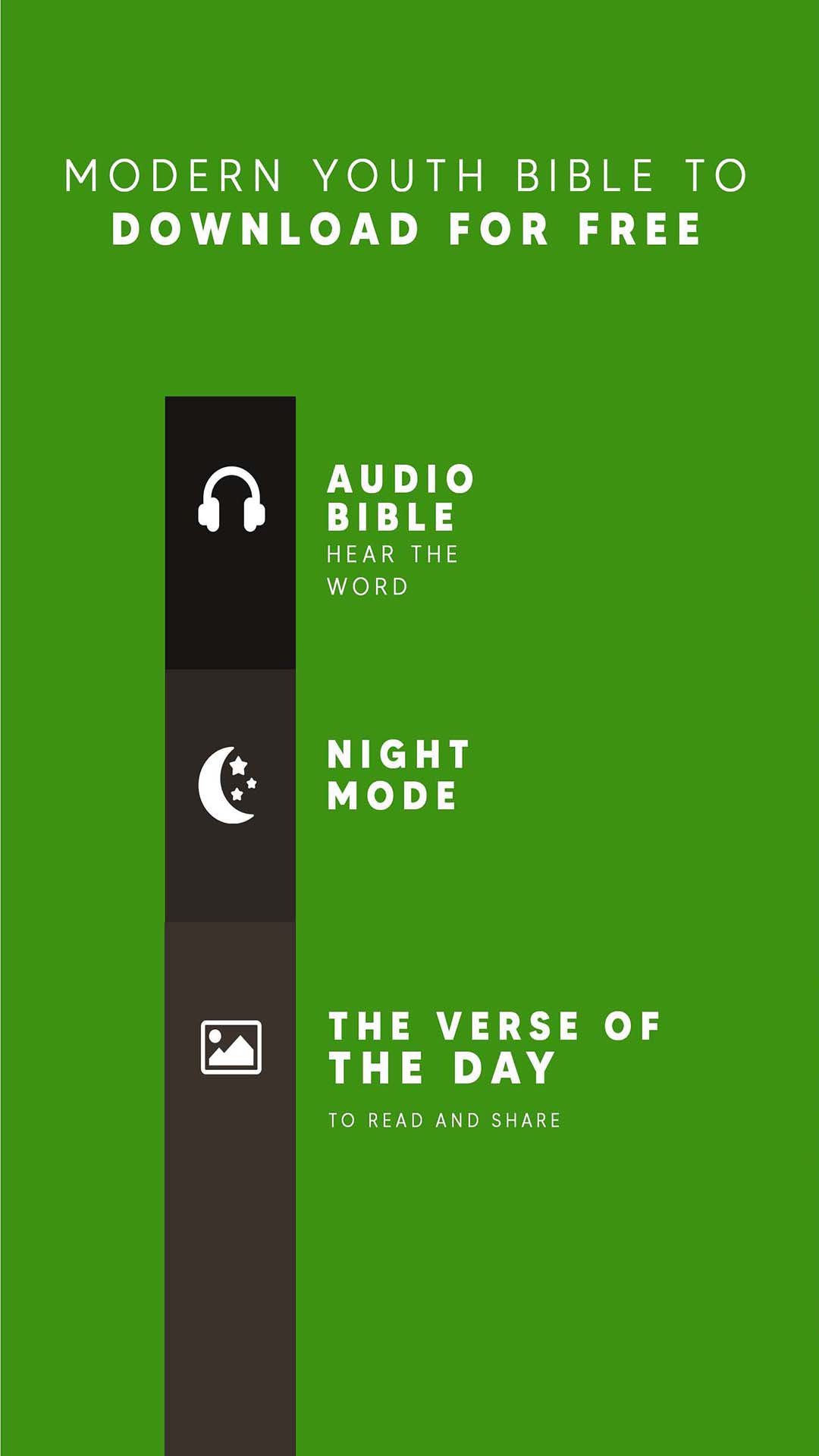 A modern Bible to read on your phone, in an easy and updated English to be understood more easily, ideal for young people who begin their reading and study of the Bible.