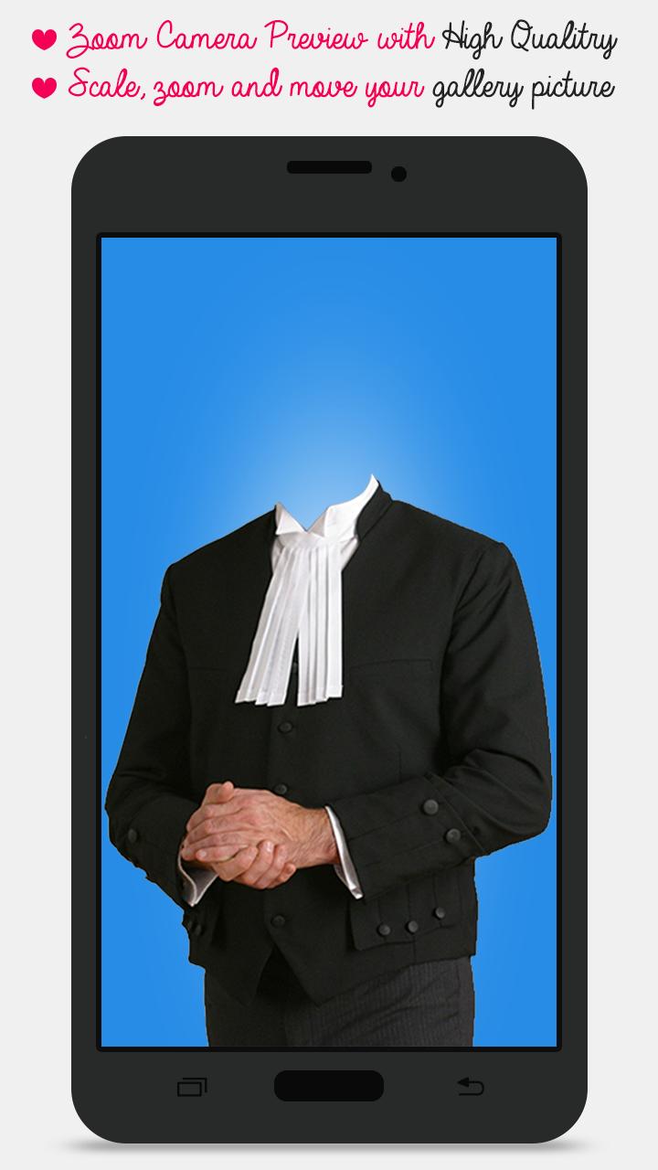 With this amazing application you can put your face into several Advocates Photo . Advocates Photo Montage app has many suits to try . Just a single click and you can try wide variety of suits on you.