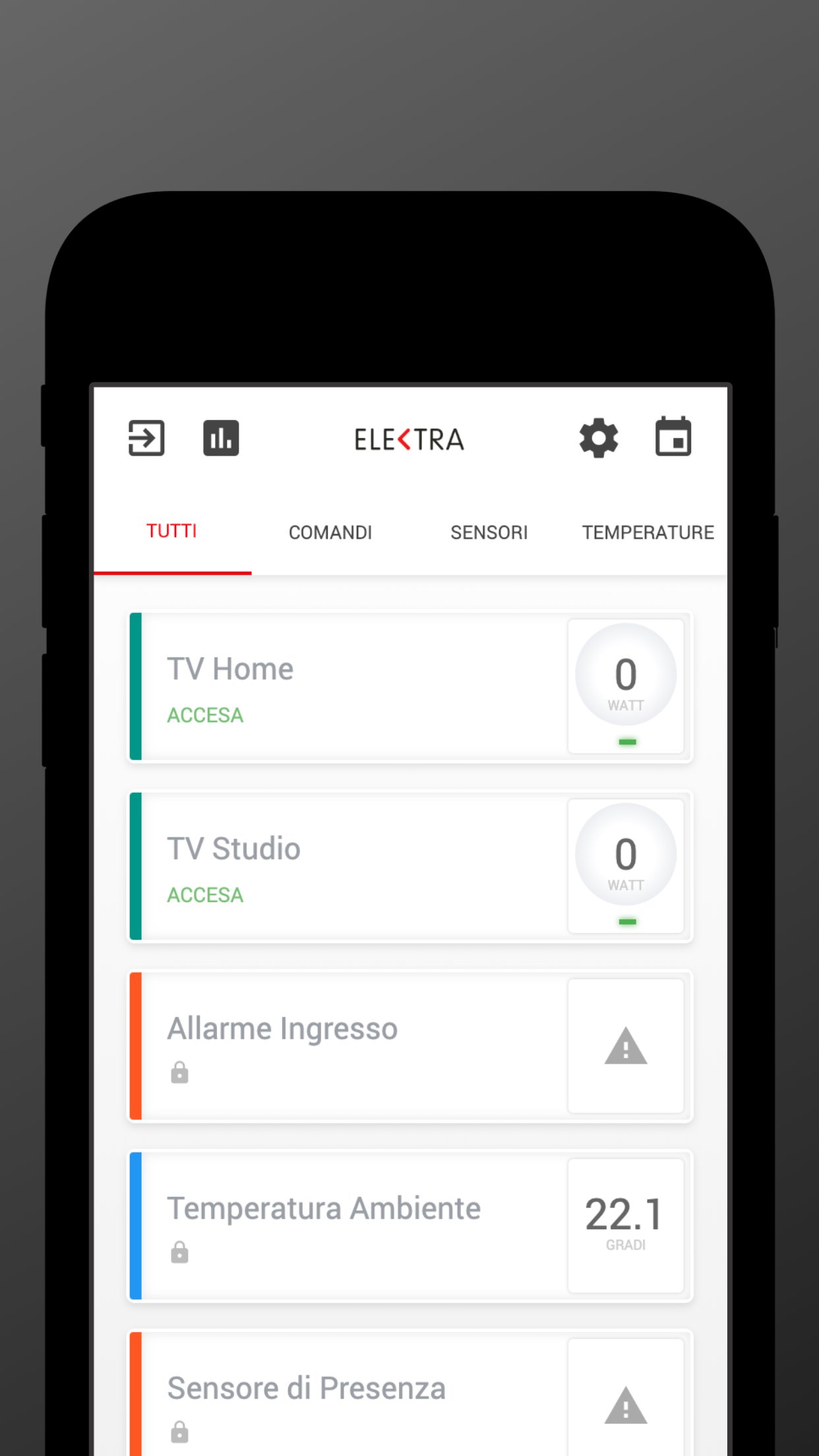 The app allows you to easily record the ELEKTRA devices in your WIFI network, configure them (for example setting the associations between inputs and outputs of ELEKTRA I + O), schedule the commands on a weekly basis, monitor consumption trends etc ... both locally that remotely.