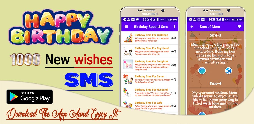The app is sorted by all new birthday SMS.Happy Birthday Wishes app contains best birthday occasion sms. Very simple user interface with free birthday wishes for wishing birthday boy, girl,mom,dad etc easily by copy birthday wishes sms or send free birthday greetings in click wishes app.