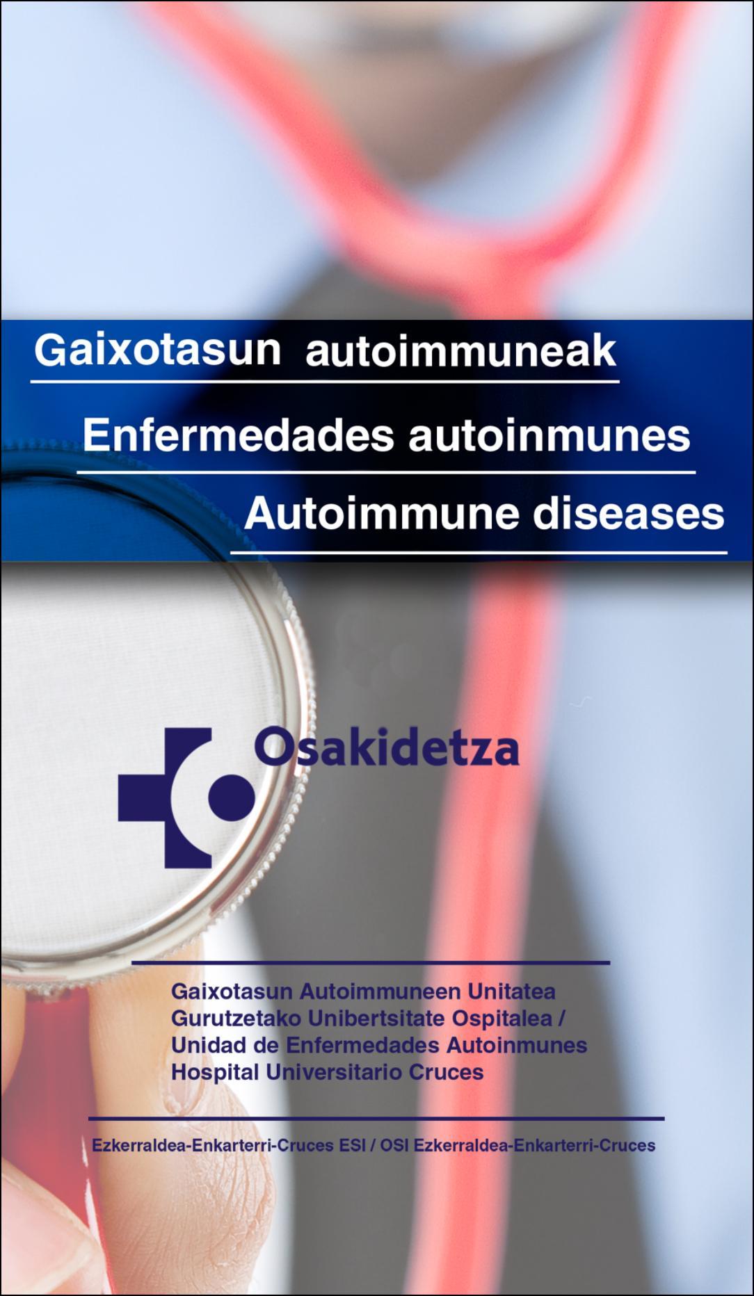 This APP contains the therapeutic protocols developed and used by the Autoimmune Diseases Unit of the Department of Internal Medicine at Hospital Universitario Cruces (Osakidetza, Basque Health Service). It is aimed for clinicians of any specialty (Internal Medicine, Rheumatology, Dermatology, Nephrology, Hematology, Obstetrics, Pneumology...) looking after patients with systemic autoimmune diseases.