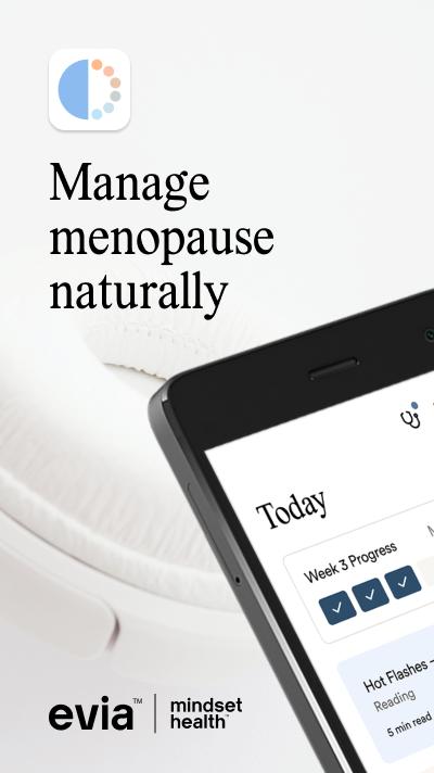 Evia is a self-management tool intended to help people live well with hot flashes during medically diagnosed menopause. It should not replace any medical or professional care, diagnosis, or treatment. Evia is not intended as a treatment for hot flashes and does not replace care by your provider and menopause treatments you may be using. Evia is not a substitute for any medications. You should continue to take your medications as directed by your healthcare provider.