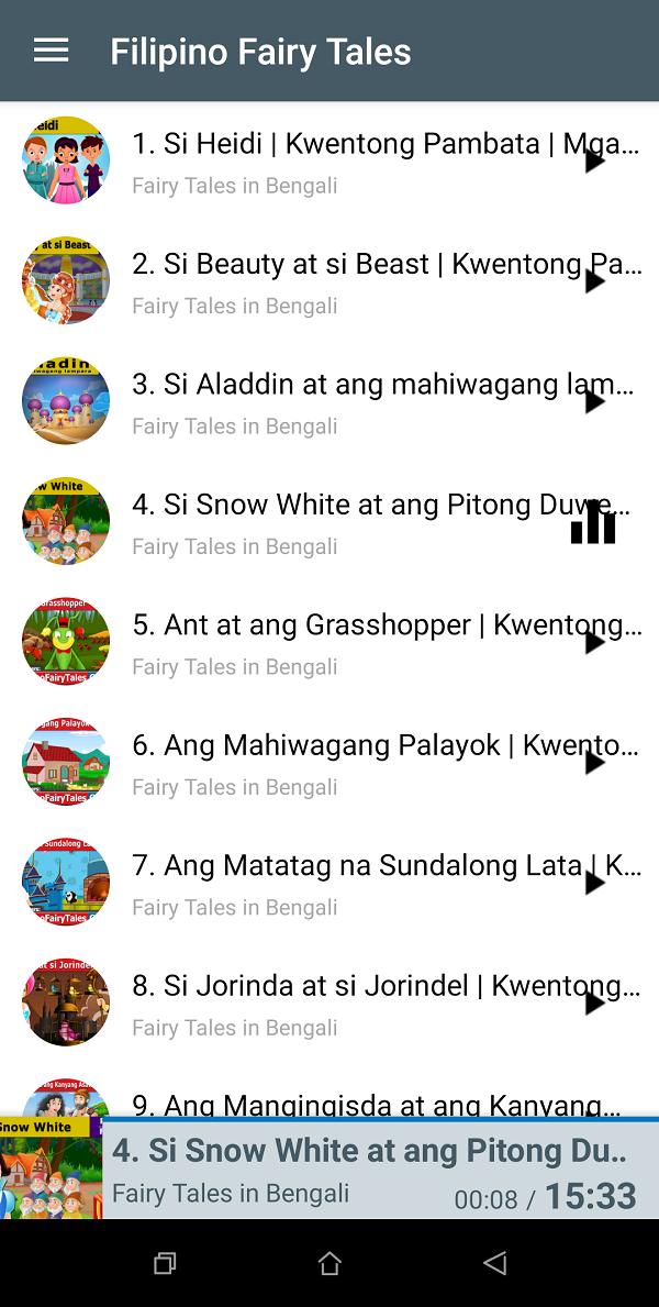 Listening The best and most popular fairy tales in Filipino, covering many topics: Magical stories, King and Queen, Princess stories, Animal, Witch, Giant Stories in Filipino