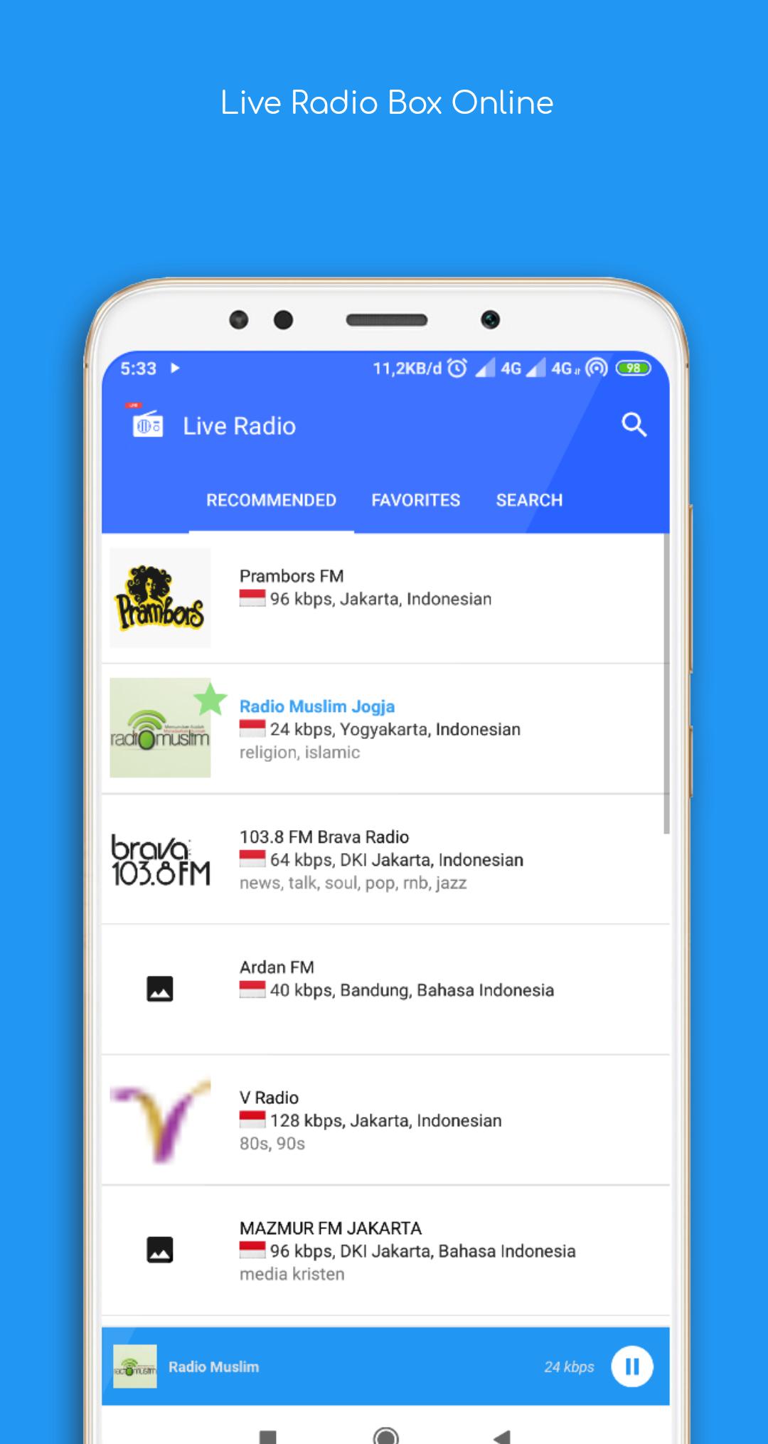 Live Radio Box Online allows you to listen and enjoy various genres such as classical music, rock, pop, instrumental, hip-hop, spiritual, songs, music, talk, news, comedy, shows, concerts, and other programs broadcast by various Radio Companies Internet all over the world.