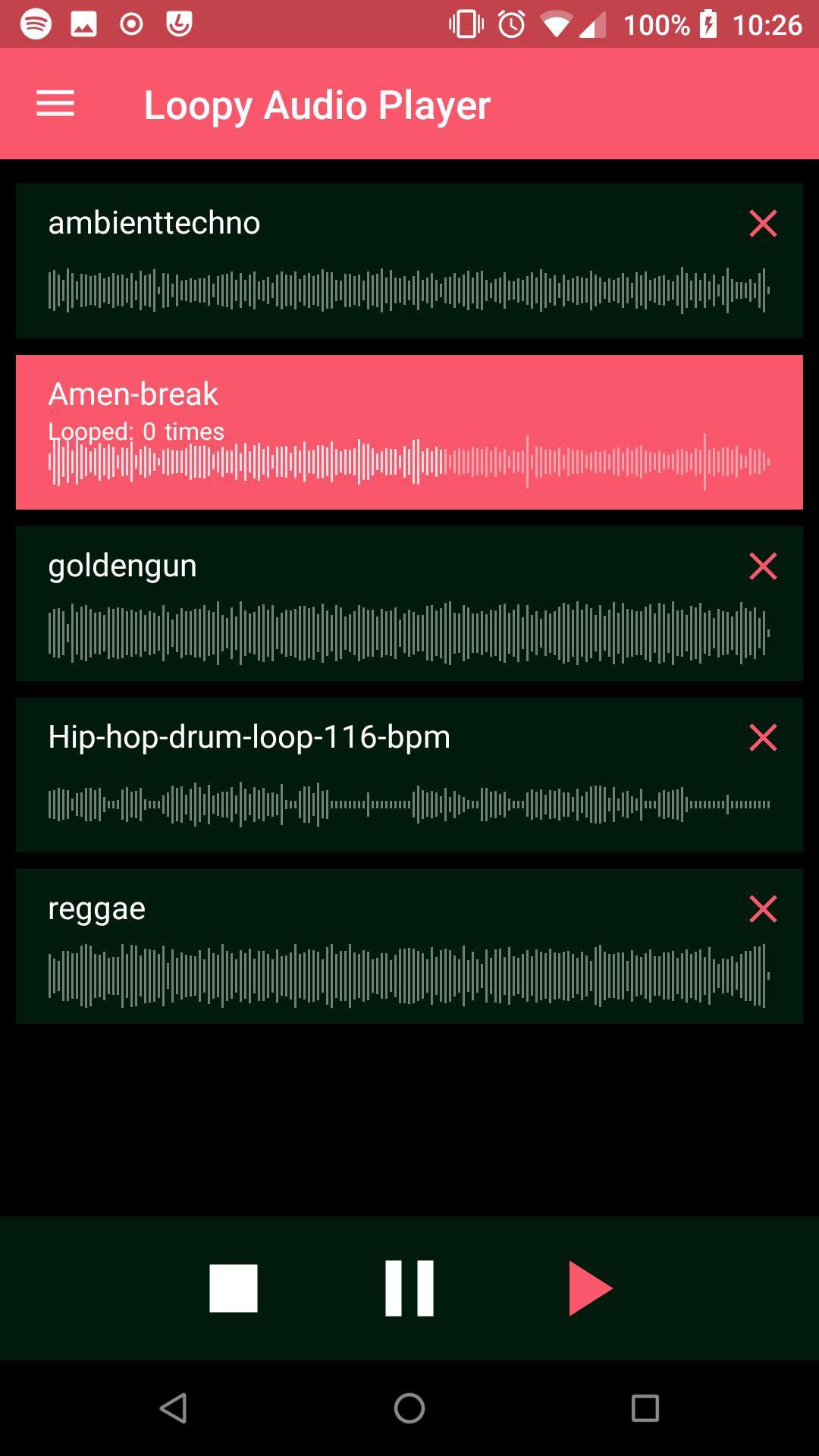 Loopy is a simple audio player for seamless looping of audio files. Loopy plays all audio files you find in your media library.