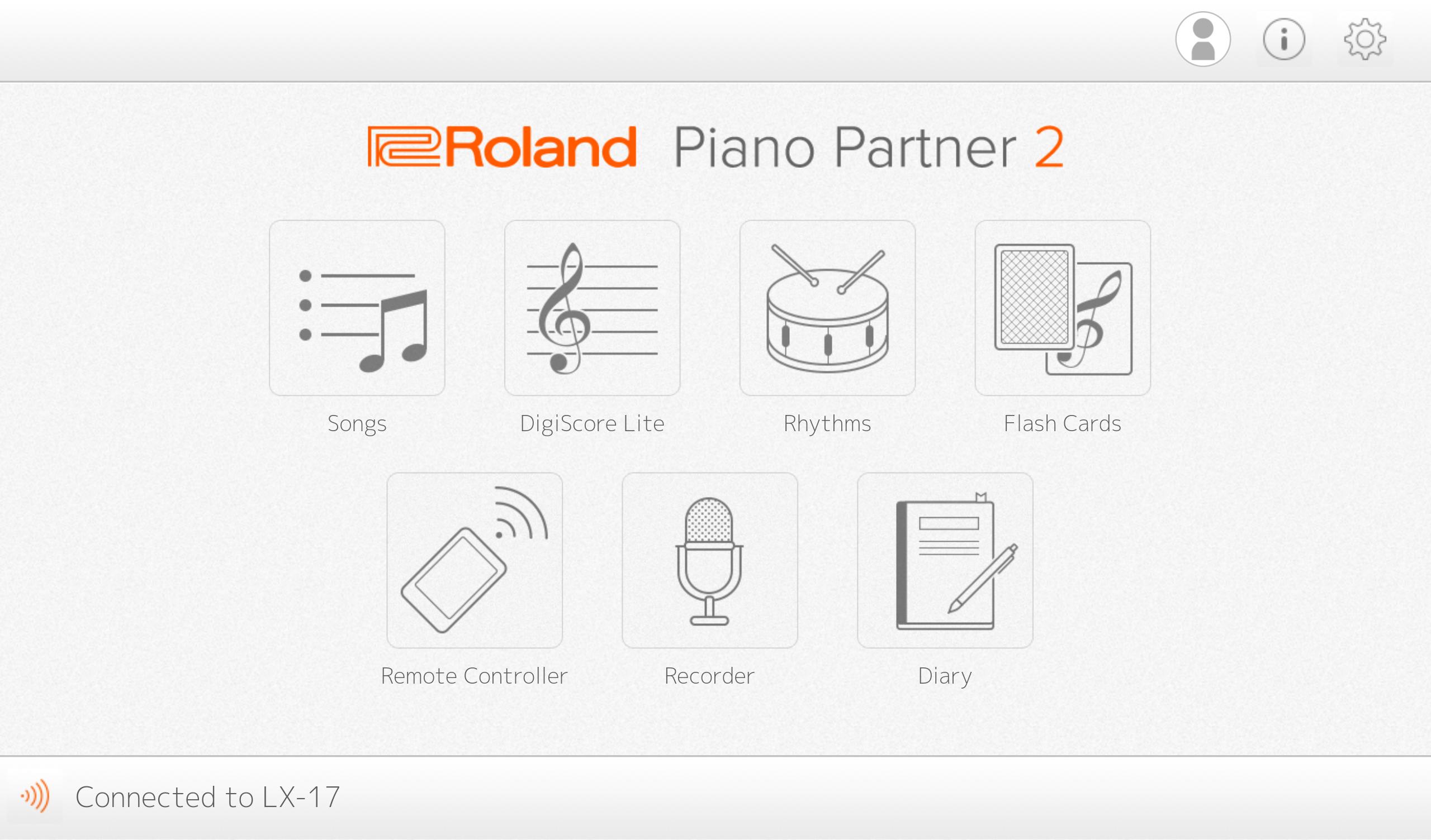 Recorder and Diary functions help you progress more quickly, allowing you to evaluate performances and keep track of your daily practice activities. The Diary logs stats about playing time, which keys you played, and more, and it’s even possible to share them with your family, friends, and teachers directly from the app. To use Piano Partner 2, connect your device and a compatible Roland piano wirelessly via Bluetooth®, or wired with a USB cable. Piano Partner 2 is available for free from the App Store or Google Play.