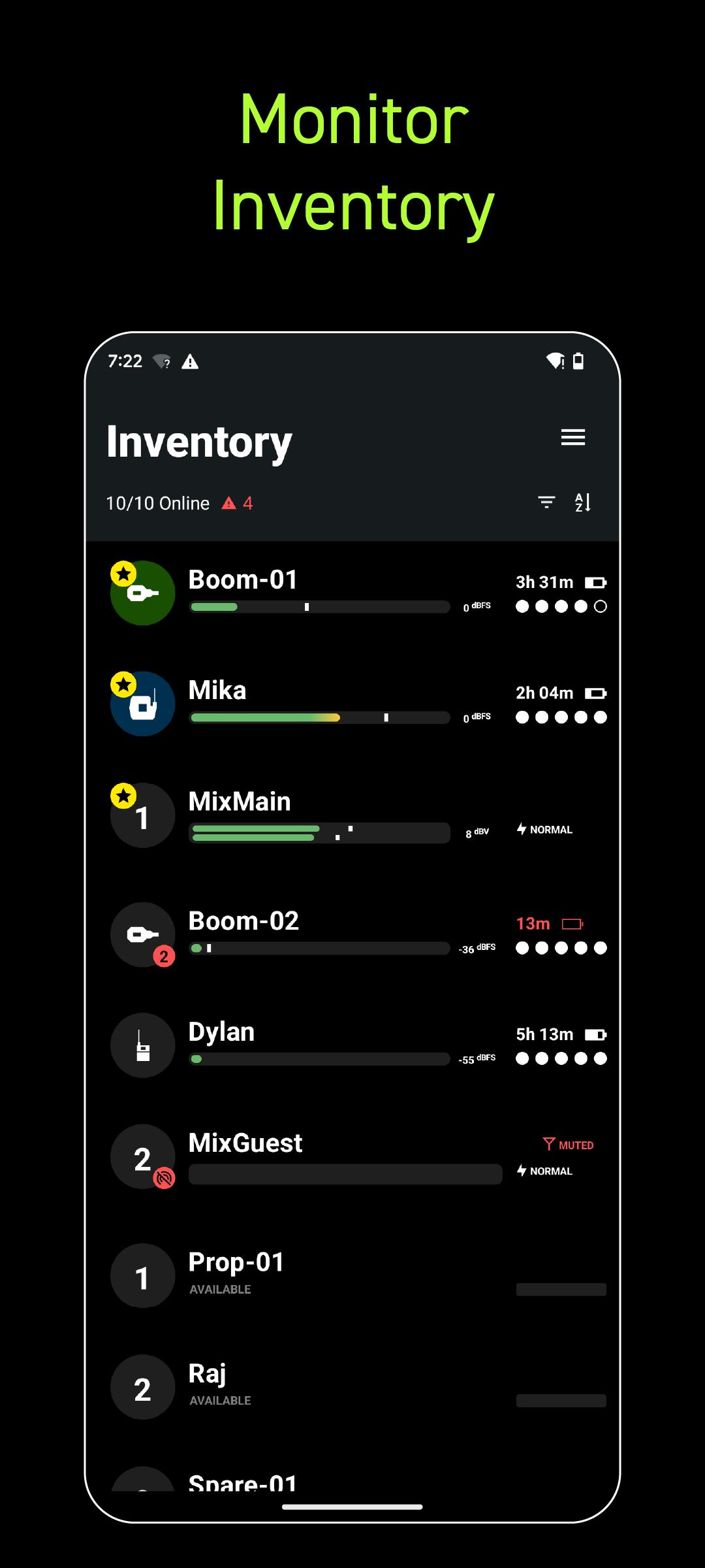 Wireless Workbench Mobile puts wireless control in your hands, wherever the job takes you. Built for professionals on the move, the app replaces ShurePlus Channels with a sleeker interface and powerful new tools. Whether on a walk test, working from a cart, or managing a live show, Wireless Workbench Mobile keeps you connected to your Shure Wireless and one step ahead.