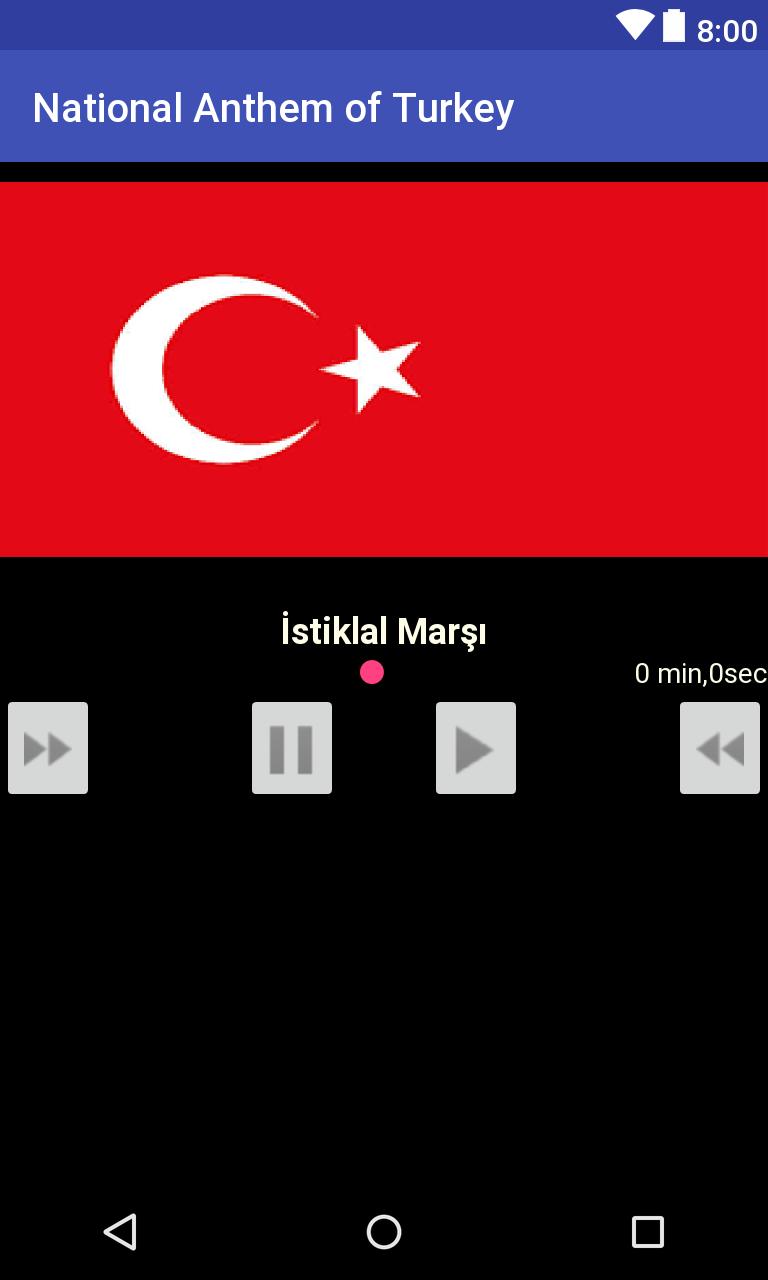 Ang National Anthem of Turkey, na nagmumula sa developer na Clima Tech, ay tumatakbo sa Android systerm sa nakaraan.