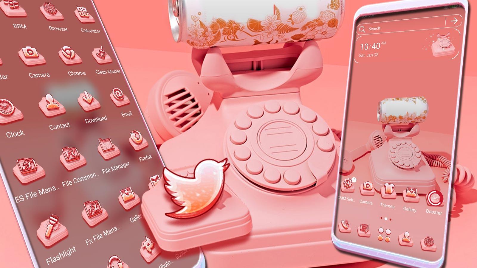 - Old Pink Phone Theme with succinct black Phone icon pack HD live wallpaper.