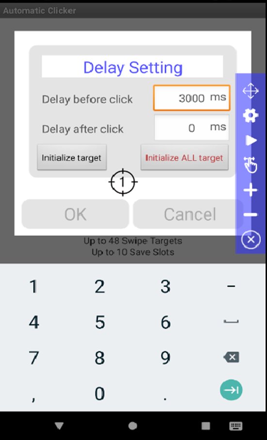 A full-fledged auto clicker 3.0 with two modes of auto-clicking, single target or multi targets mode. The maximum amounts of clicked can also be set (or left as infinite).
