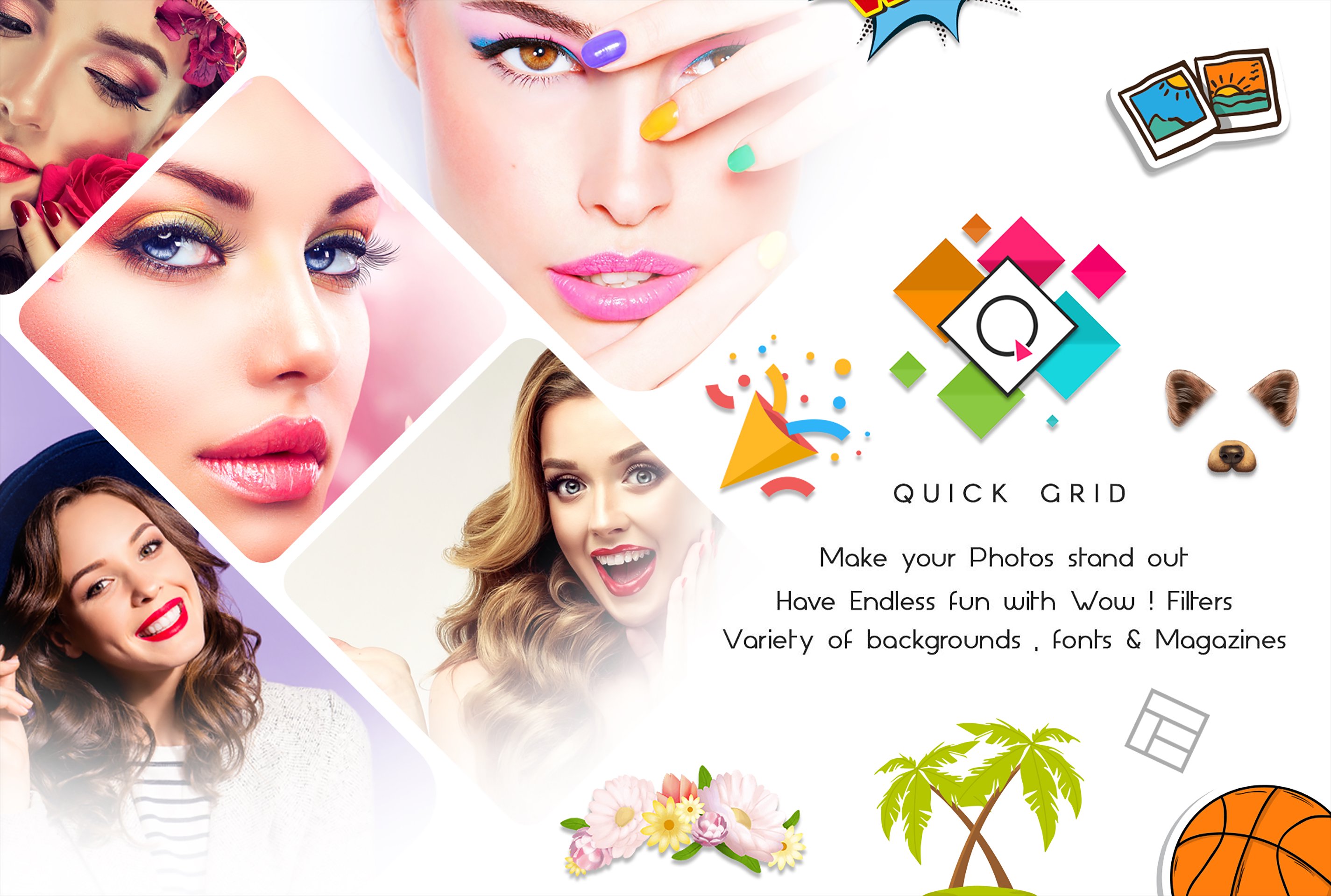 “Quick Collage Photo Grid - Photo Editor & Collage Maker” is photo collection app which allow you to combine multiple photos inside frame patterns. Photo Grid - Collage Maker packs a simple design with a powerful editor to give you everything you could, and Collage your photos to be amazing!. Also provide facility to add some great stickers and texts over collection frame.