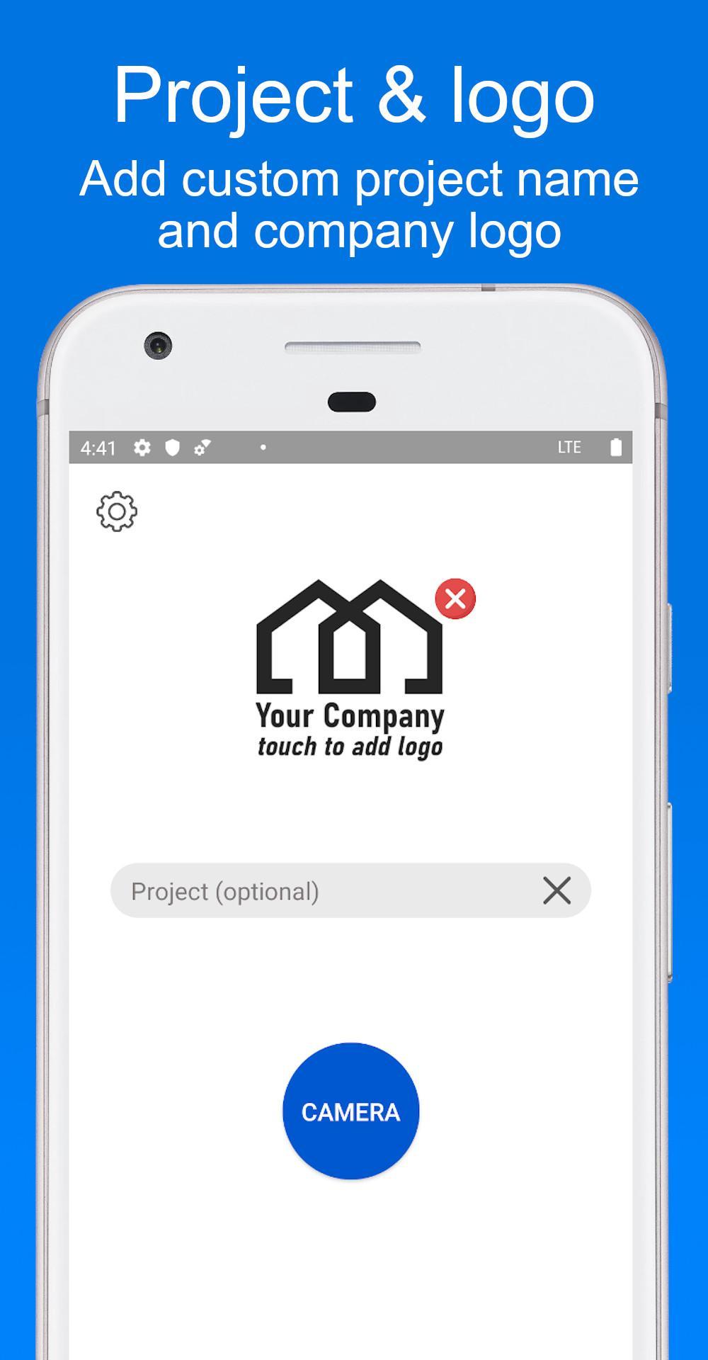 All information can be added as a watermark on the taken photos. Additionally, all information can be added to the file name for a better overview when using the images onto a computer. If enabled, a text file will be created, tabulating all taken notes, and can be edited directly in the app while on site. A custom company logo can be added to the watermark.