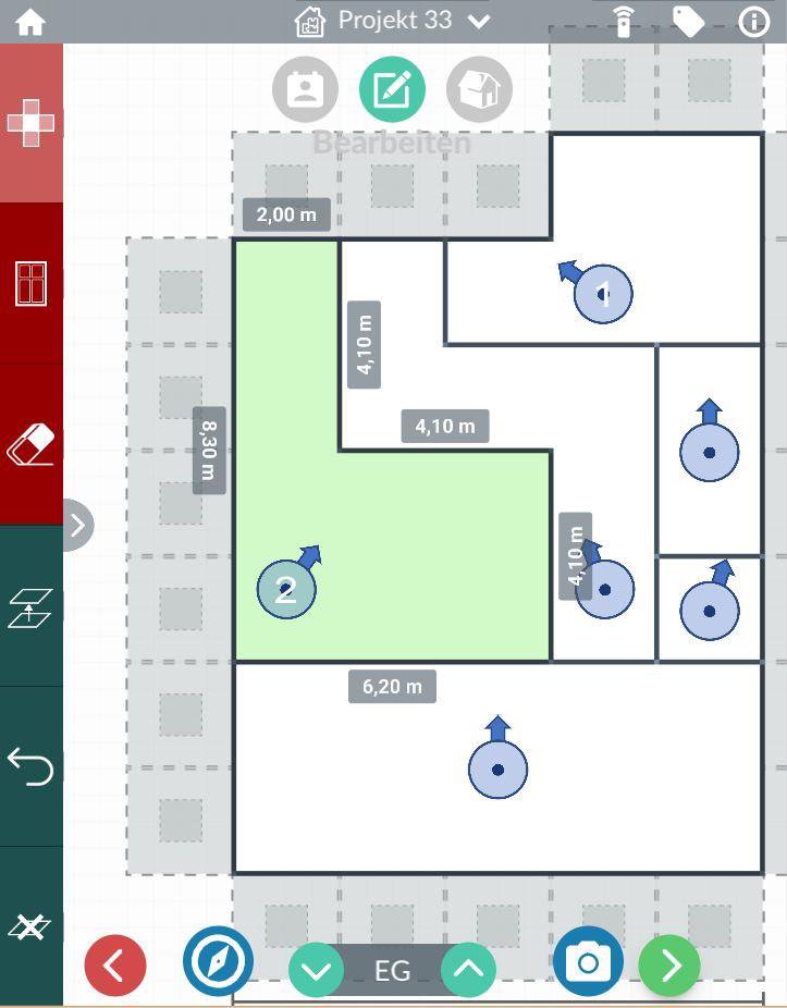 Start at sight with the collecting of data for your BIM project. With the bimCAD app, you can quickly and easily record floor plans on the spot using the touch of your smartphone or tablet. In the free entry-level version, you can manage projects, draw in 2D, view a 3D view, add notes and photos, and much more. The result is output as a pdf at the push of a button which can be sent directly via email.