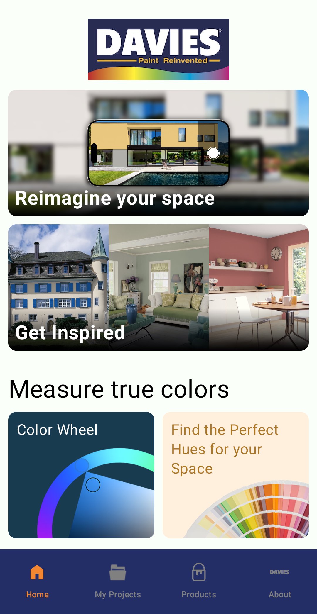 The Davies ColorStudio App is now here to help your vision come to life. Pick any Davies Paint color you want and apply it directly to any image from your phone. At the push of a button, you can now visualize your own paint projects by digitally coloring your walls. Deciding on the final paint color to use for your project becomes easier than ever with this app.