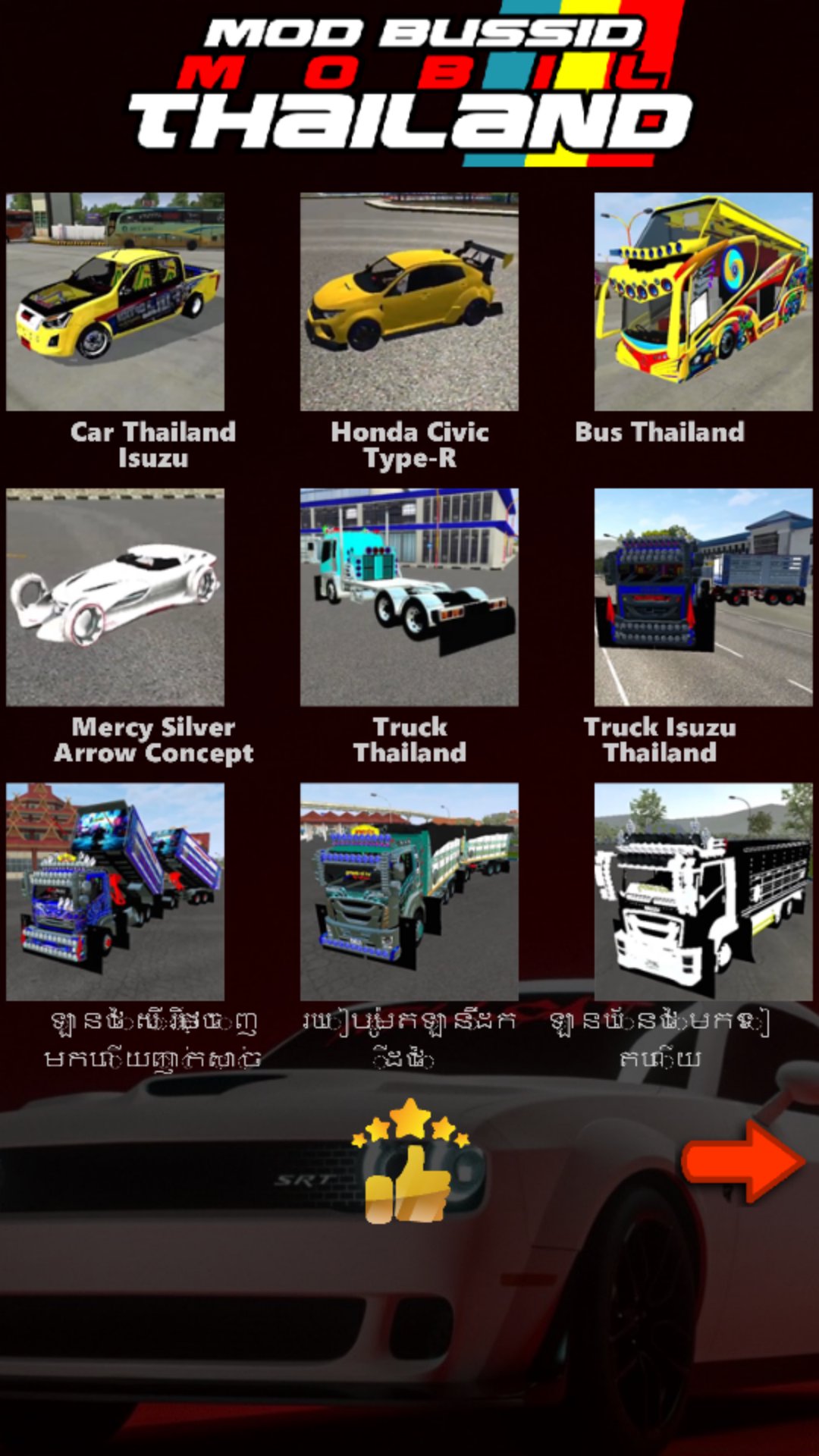 We've provided the latest 2023 Bussid car mods with many advantages, including the Thailand Simulator mod, a special version of the full-modification car mod app. The modified Bussid car mod can be installed directly on the Bussid mod update v3.7. Popular names include the complete Bussid car mod (ម៉ូតឡានបែនដៃតូចតែខ្លឹម), the Thailand Bussid truck mod (ឡានថៃកង់ដប់ឡូយណាស់). We only provide:
