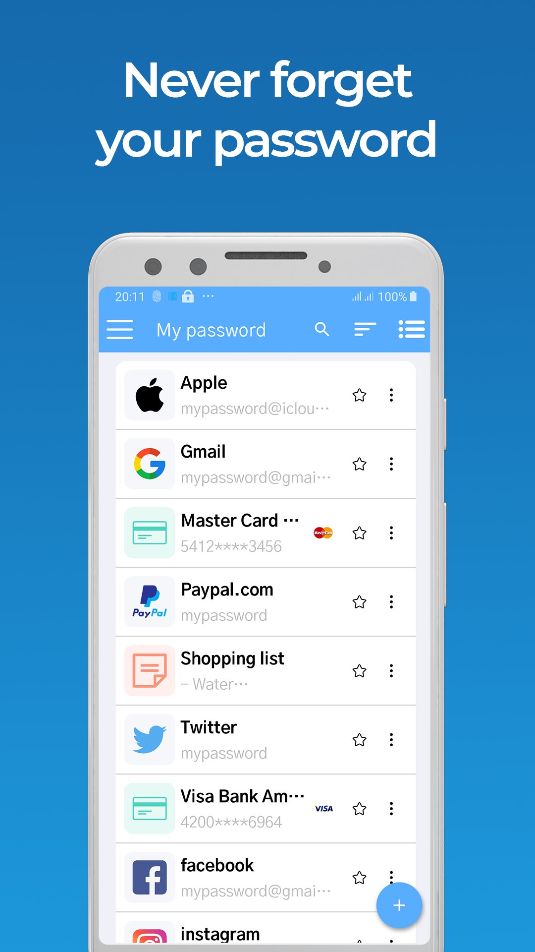 My Password Manager will help you manage all your logins, passwords and personal information safely and securely in an encrypted database.