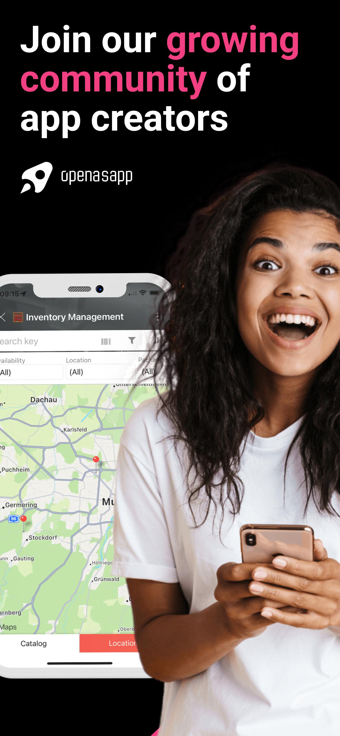 It's easy. All you need is Excel, Google Sheets, or other databases that serve as your app's base. Upload your file or use a template. Open as App will recognize the logic and creates your app automatically. Once you are finished, you publish your app, share it, and work with it in real time on any platform.