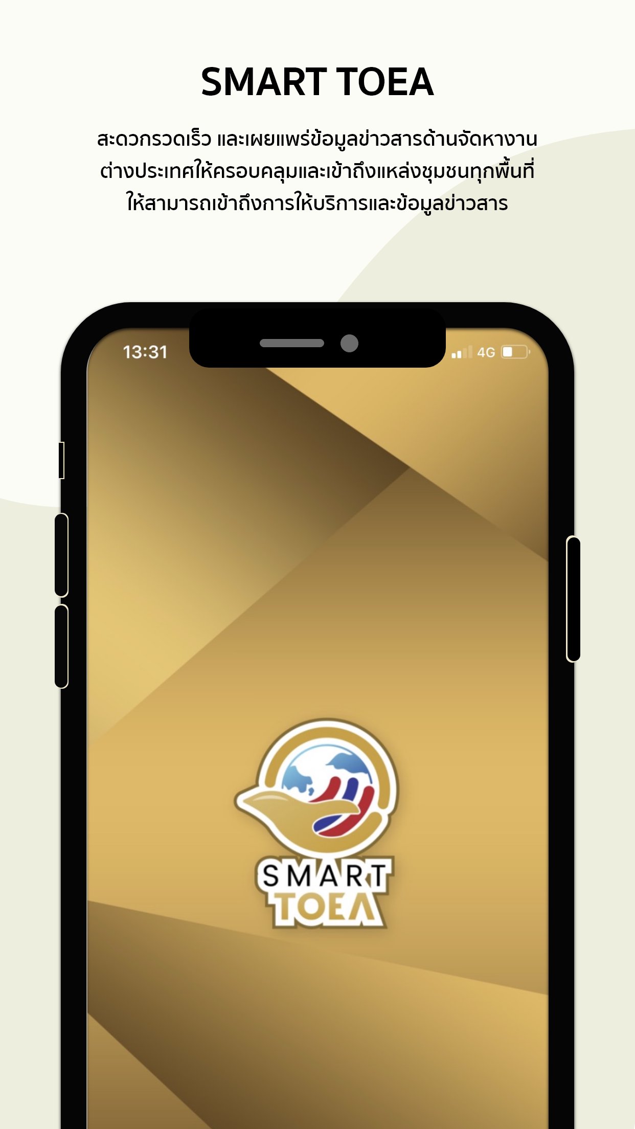 Department of Employment By the Thai Labor Administration Division to create a mobile application under the name "SMART TOEA" with the objective to facilitate "Users / Job Seekers" to receive information about going to work abroad By lawfulness / Inspecting jobs and service places to prepare for travel to work abroad / Notice of travel to work abroad / Applying for funds to help people find employment to work abroad / Check information Or receiving other services for traveling to work abroad / Complaints of User / Job Seeker / Assistance Coverage Service users / job seekers In the event of an emergency