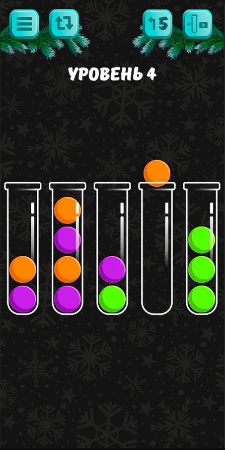 • Only balls of the same color are combined, and to win you need to put all the balls of the same color into one flask.