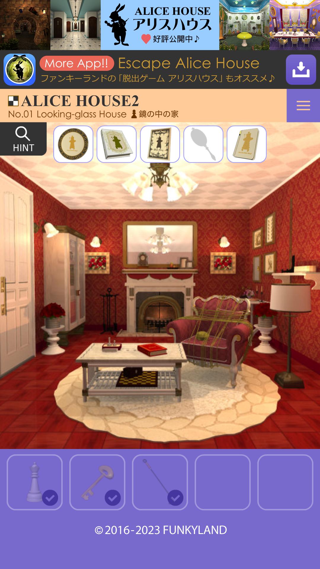 The popular FUNKYLAND game of escaping from Alice-themed rooms like "Through the Looking-Glass" by finding characters is now available as an App!