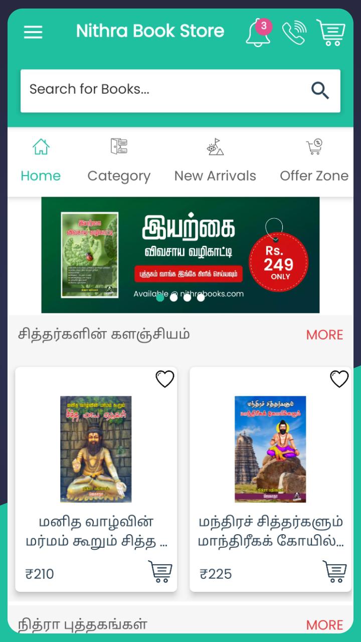 Nithra Books App - collection of Tamil unique books available in various categories. You can purchase the book by searching in category, New Arrivals, Offer Zone, Authors and Publishers.
