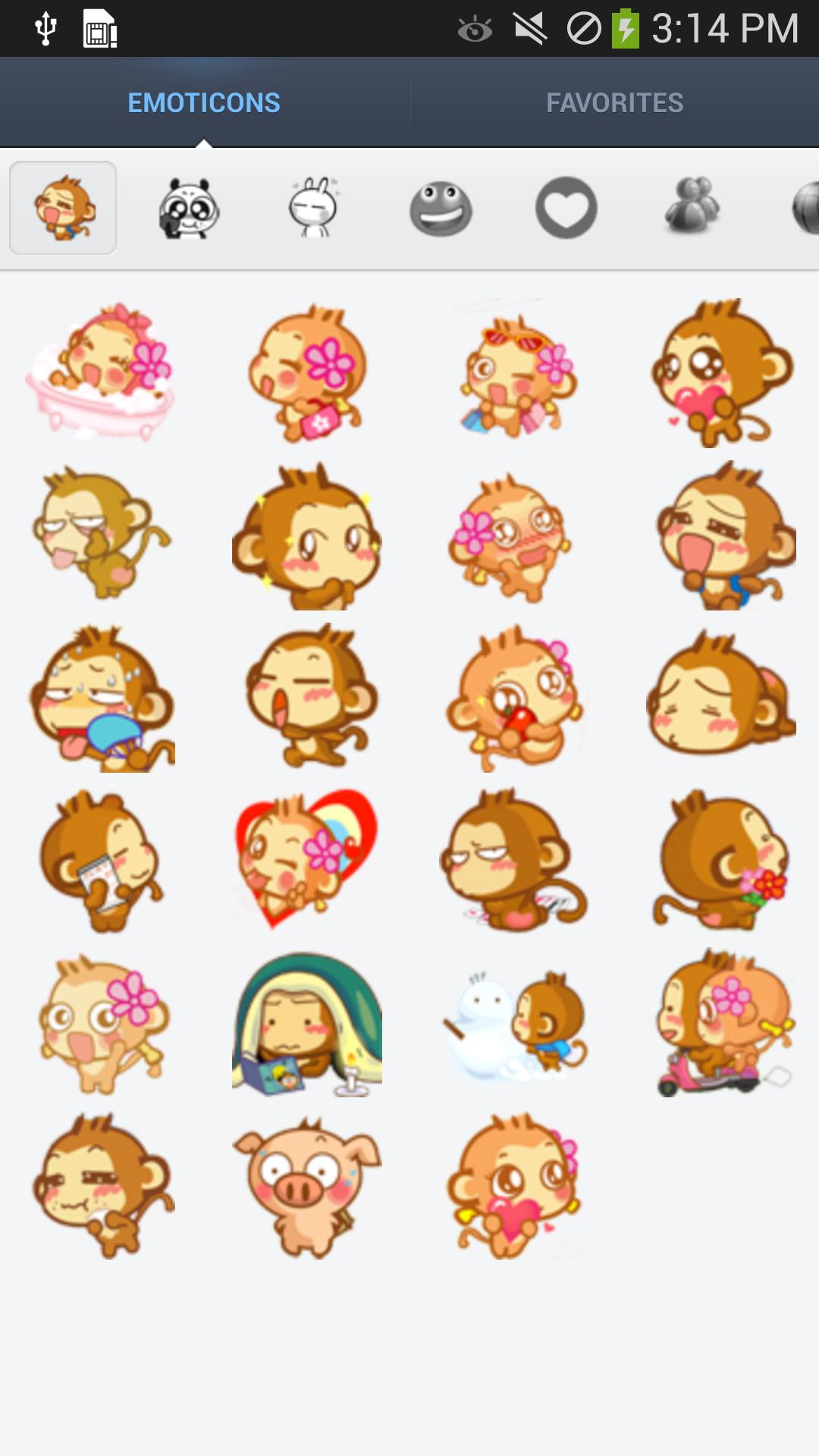 * Emoticons categorized in funny characters ( Panda, Monkey, Rabbit, 3D Villains etc.)