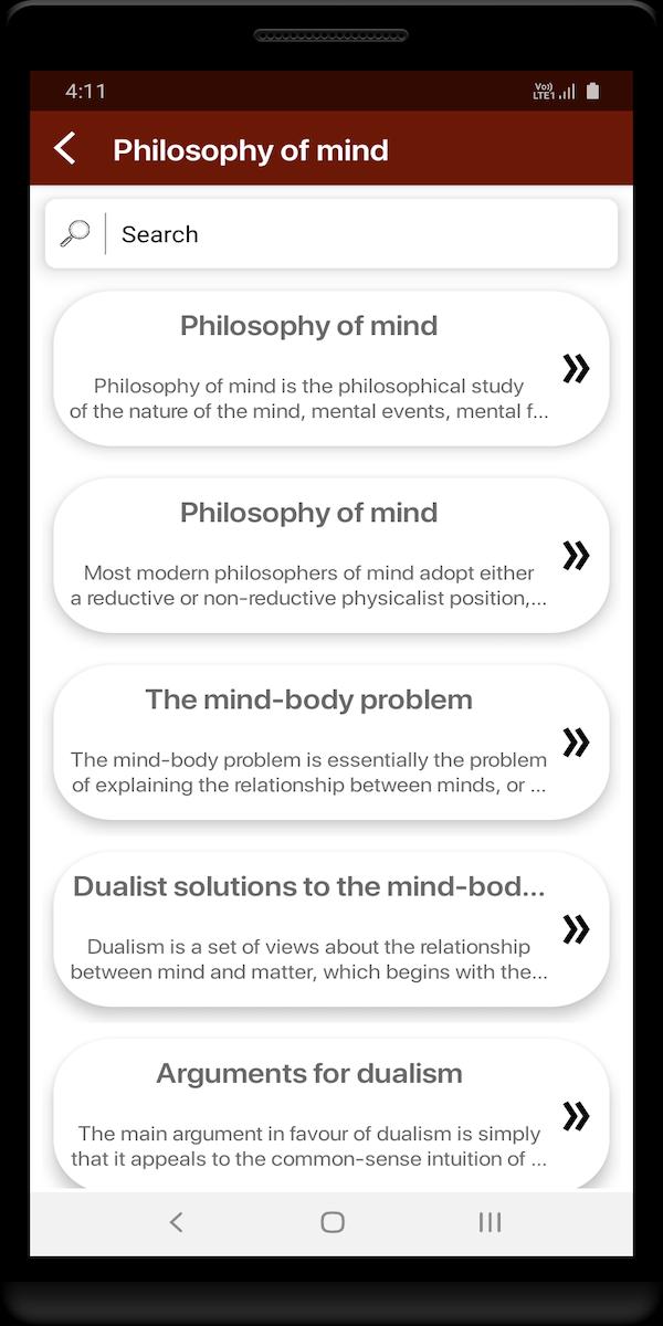 Ang Philosophy of mind, na nagmumula sa developer na BhadarApps, ay tumatakbo sa Android systerm sa nakaraan.