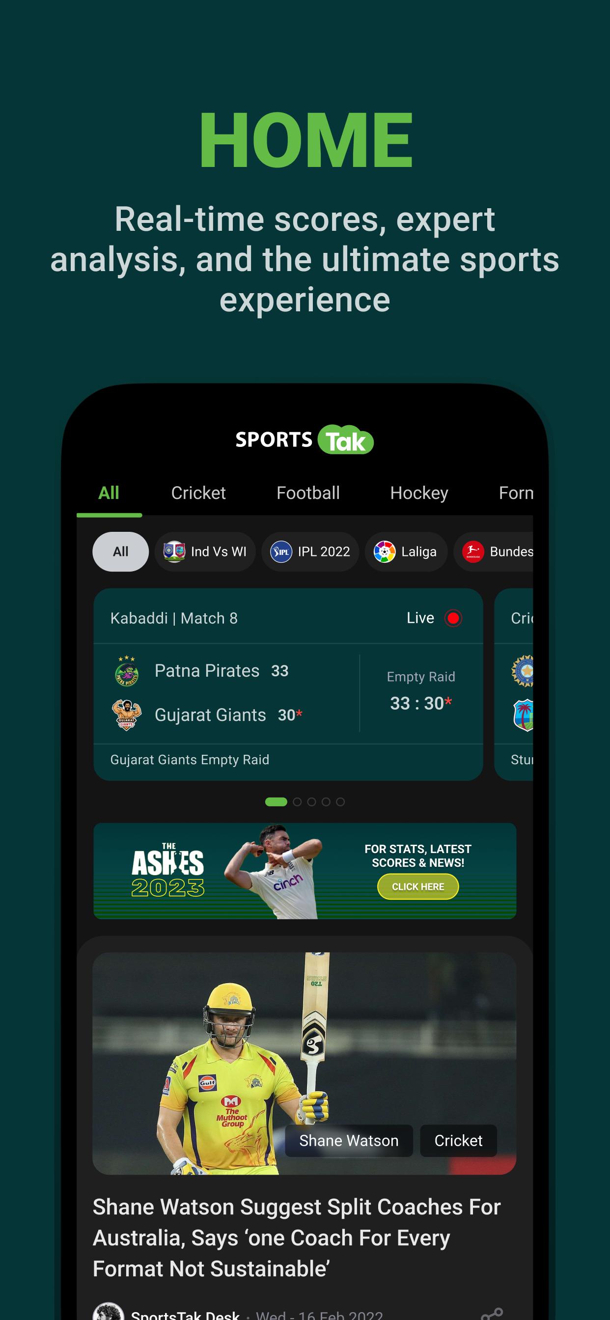 SportsTak is a multisport platform that caters all your sporting needs international and national. . It brings you news ,videos, live analysis, live match score, match center, short video content , press conferences, match highlights , sporting polls, infographics, player statistics and much more from a wide variety of leagues including EPL, Asia , F1 Racing, India Vs Ireland , T20 World cup, NBA, Champions League, La Liga, Pro Kabaddi League- the list goes on and on and on