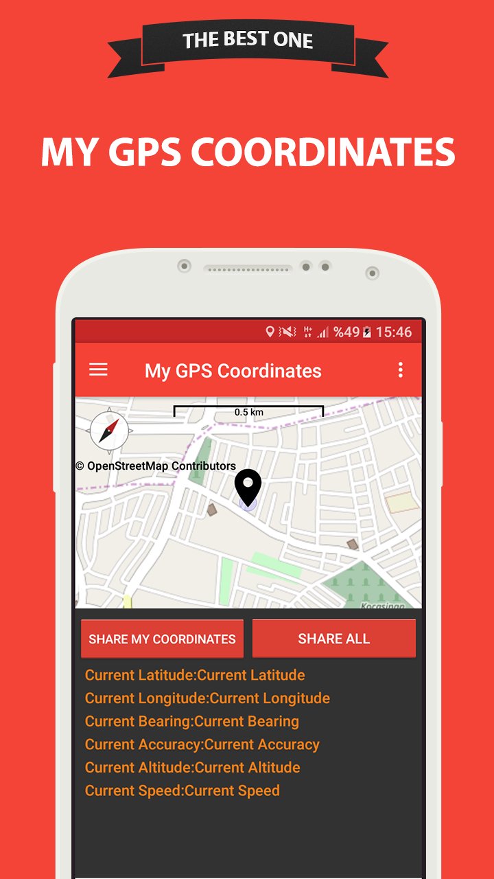My GPS Coordinates app allows you to view your current location on the map and shows your coordinates below the map as latitude - longitude values in decimal. Whats more, you can search map coordinates of your current location and you can also share your current gps coordinate with friends in latlong format, on the map as well. it is simple and most accurate gps coordinates locater app. Please help us in translating this software to other languages. Thank you.