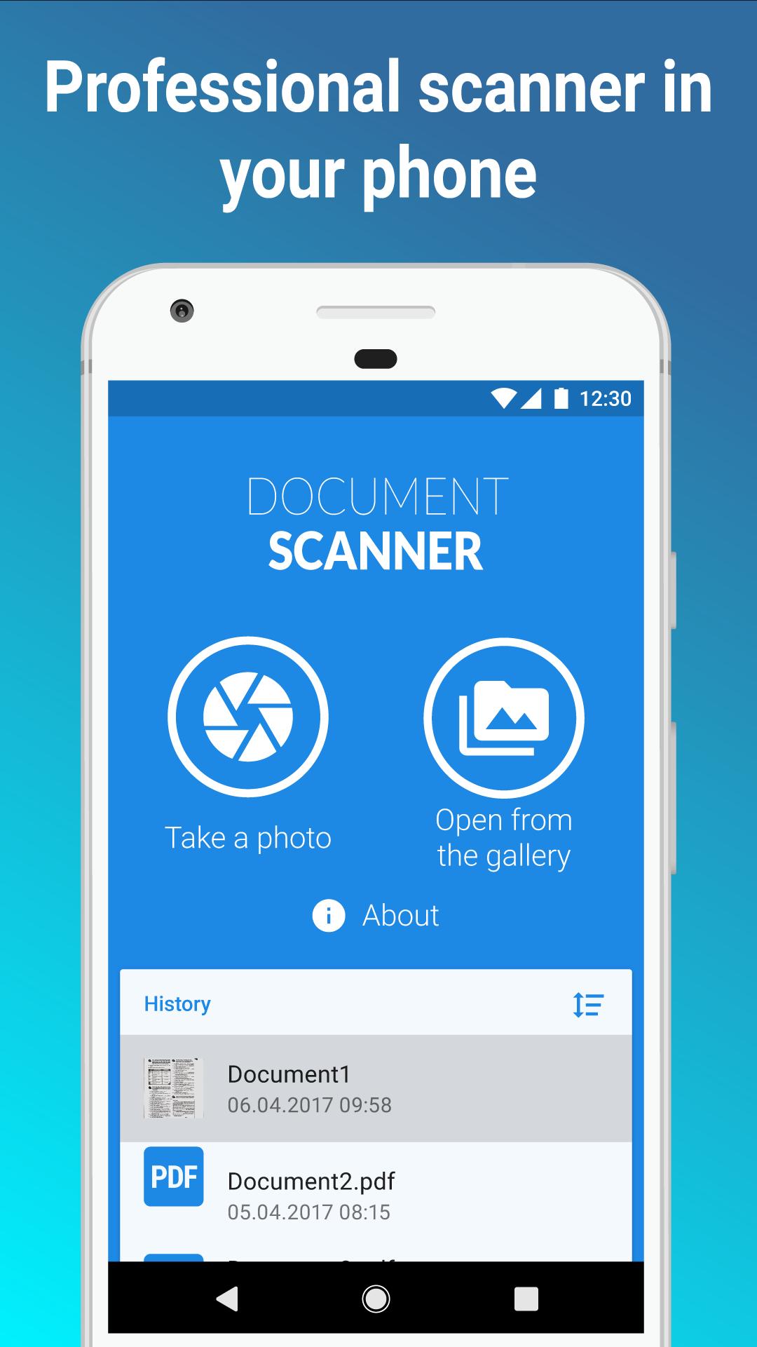 The Document Scanner has been designed to allow you to make on the spot clear, digital reproduction of any prints, letters, forms or receipts. This app is a mobile document scanner to be used in any situation. It's user-friendly and intuitive.