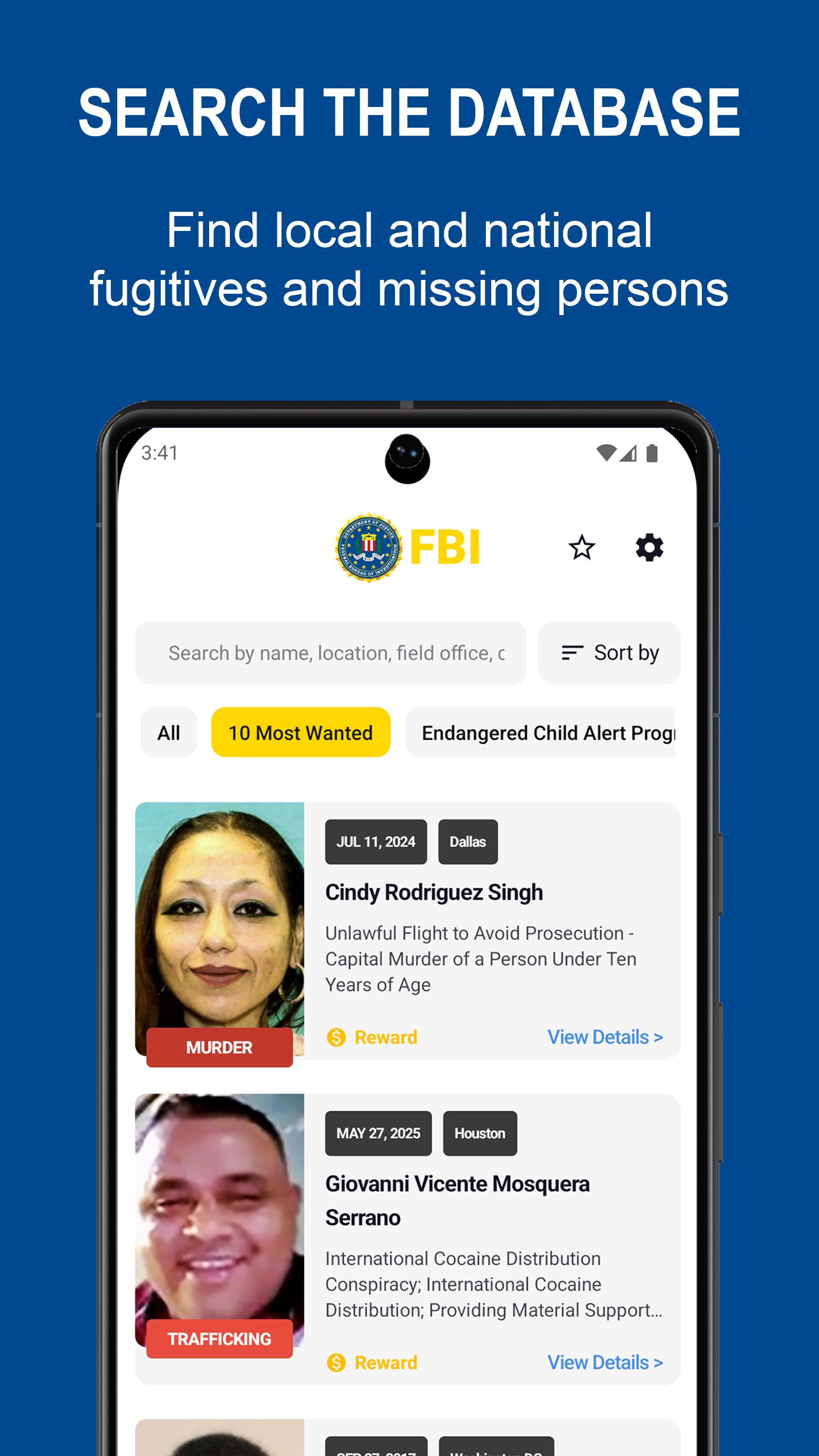 The FBI Wanted mobile application is a tool designed to help track down criminals and recover victims. The app provides information issued by the FBI in a user-friendly interface with various search and filtering options not available on the FBI.gov website.