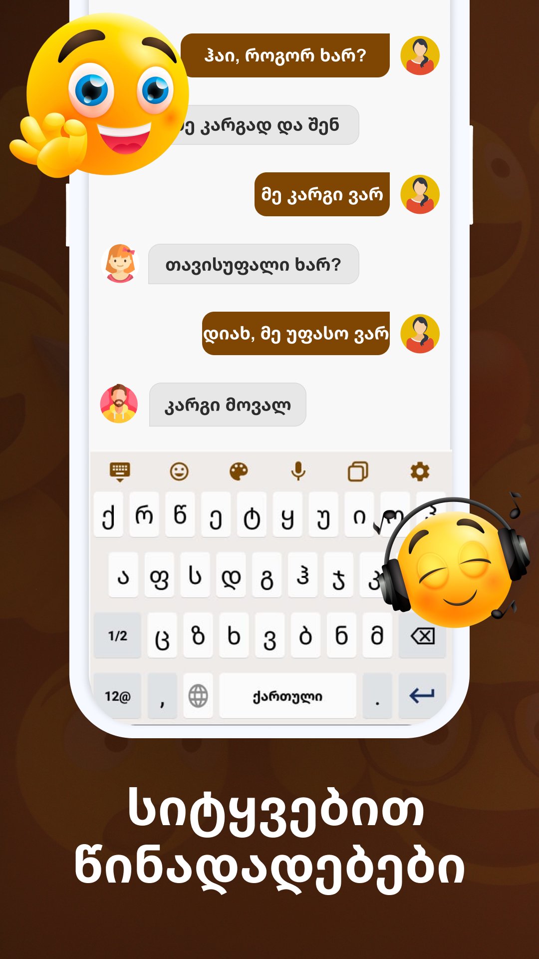 • Easy Georgian keypad includes new emojis, Symbols, and text styles