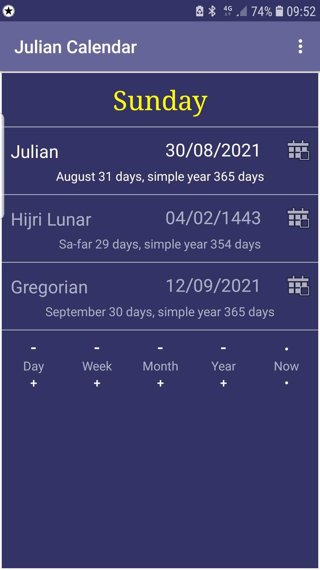 Ang Julian Calendar, na nagmumula sa developer na AbuHadi, ay tumatakbo sa Android systerm sa nakaraan.