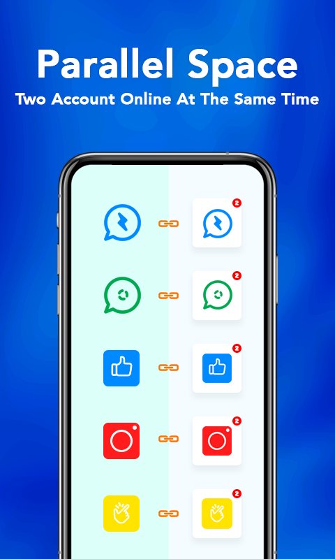 Parallel space app is top rated android app to clone dual accounts of same app with one device. Parallel space is compatible with almost all android apps. Get this app now to use multi accounts, keep a balance of personal and professional life and protect the privacy of multi apps.
