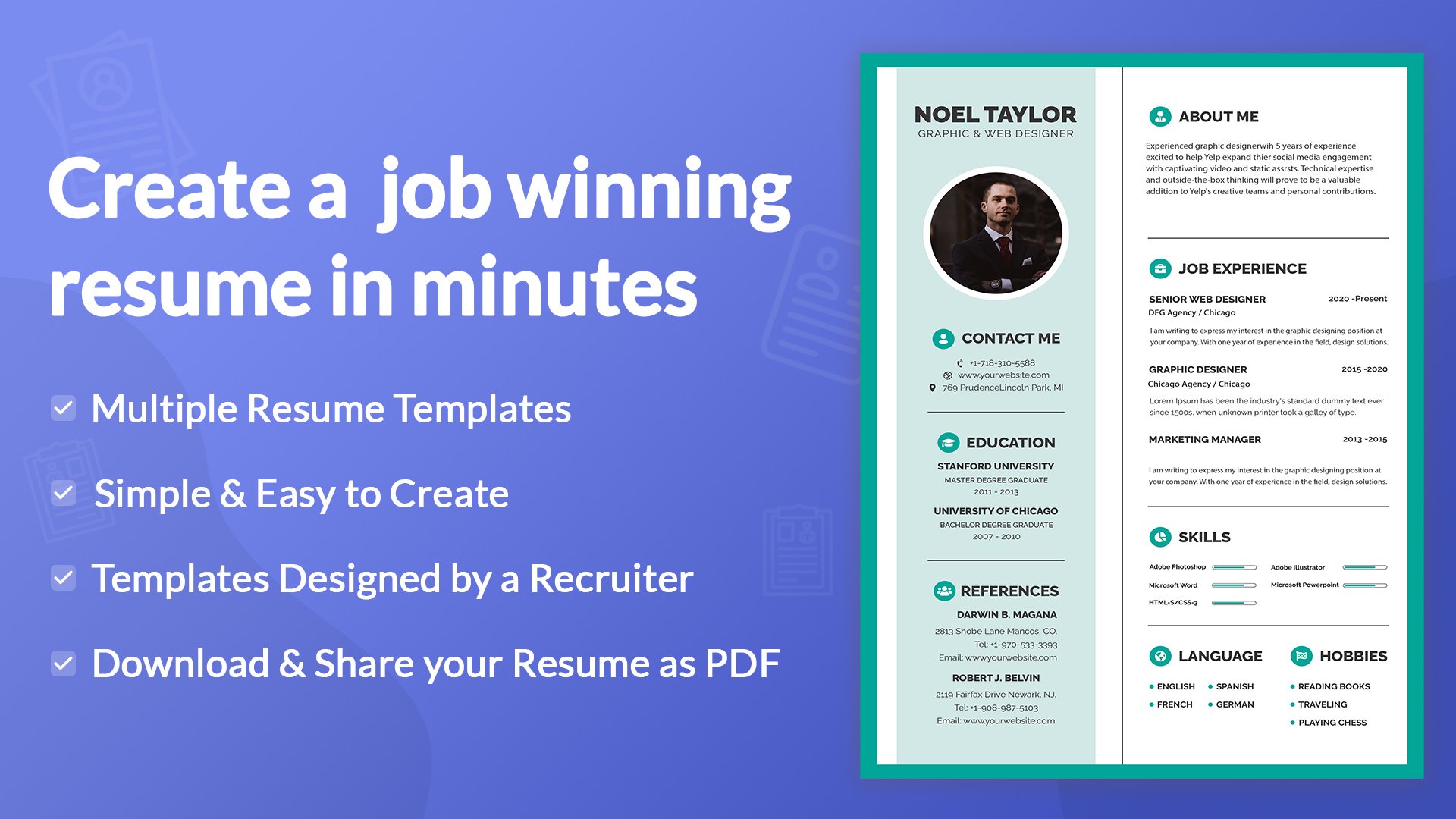 A perfect resume format for the job is compulsory when you apply for any job or go for an interview. The resume maker & resume generator app will help you a lot to achieve this goal.