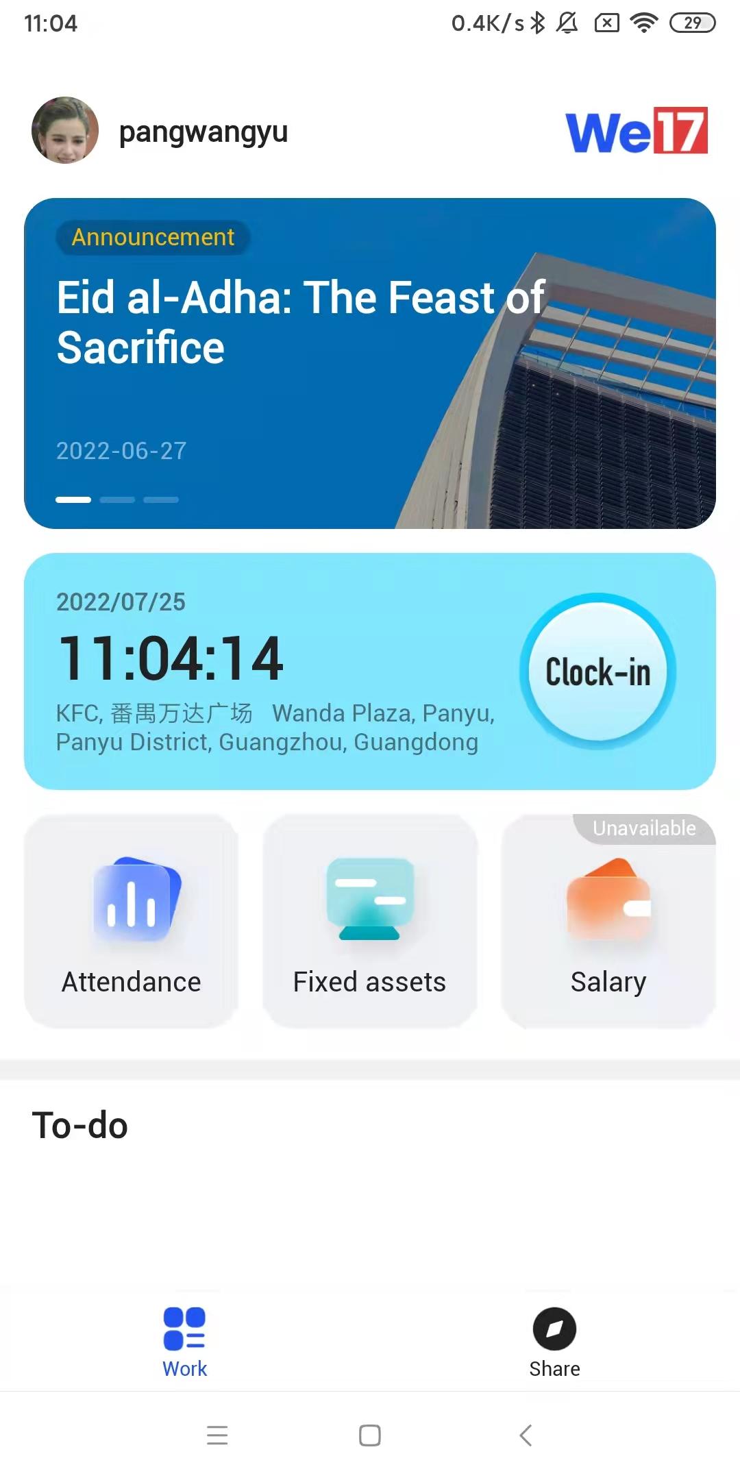 We17 software is an enterprise management tool used to manage the company's overseas employees. Administrators can publish announcements and view employee attendance statistics; Ordinary employees can punch in and out of work, make salary statistics, and share interesting videos.