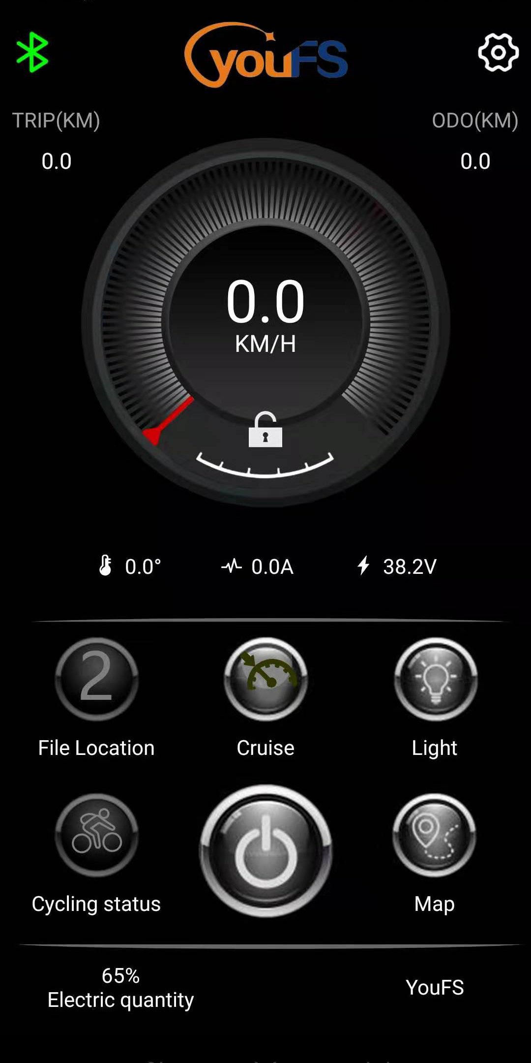 Functions of YouFS App: real time speed, current mileage, total mileage display function, unit switching function, APP intelligent locking function, body status data monitoring function, vehicle speed gear mode switching function, vehicle driving track display and other basic user demand experience functions.