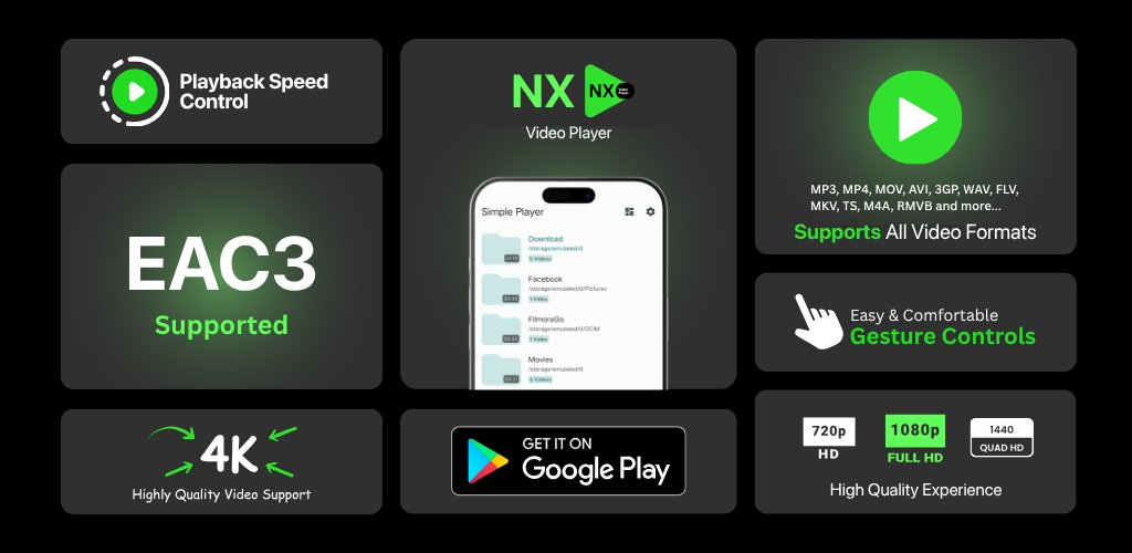 ✅ Simple Video Player Supports EAC3 & All Format 8K 4K 2K 1080 Full HD and more.